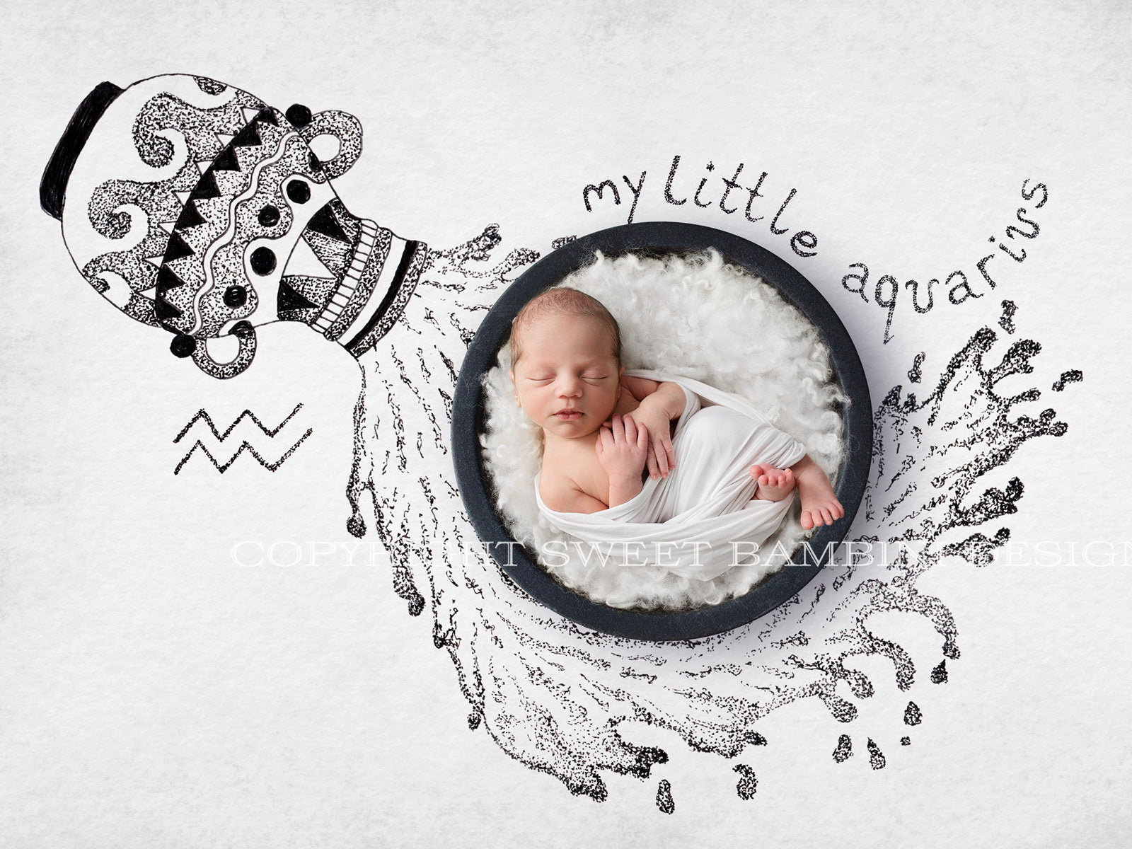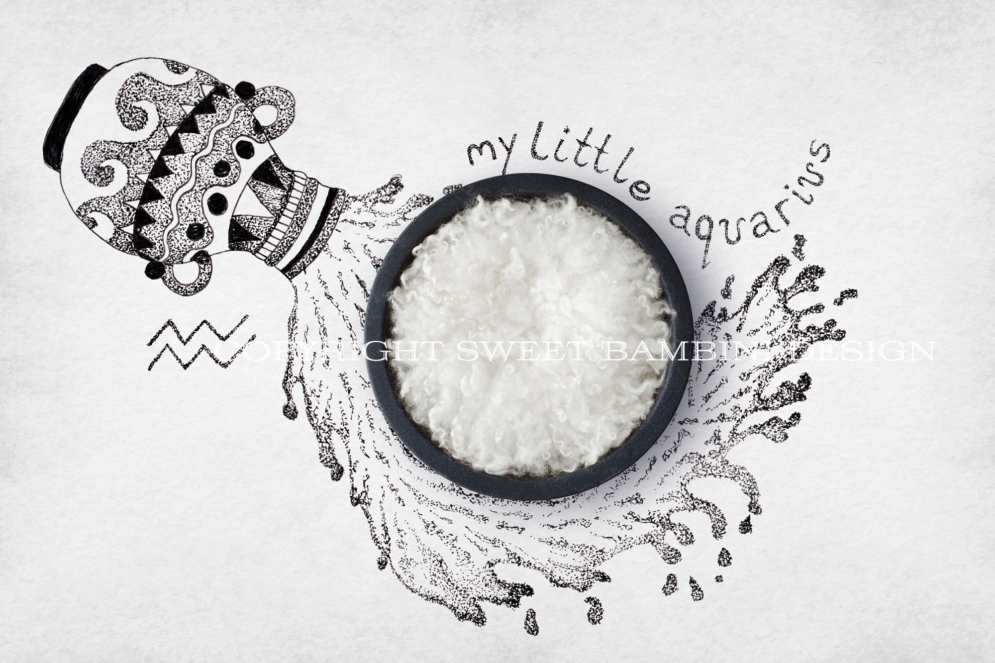 Horoscope newborn digital backdrop - AQUARIUS baby, black bowl