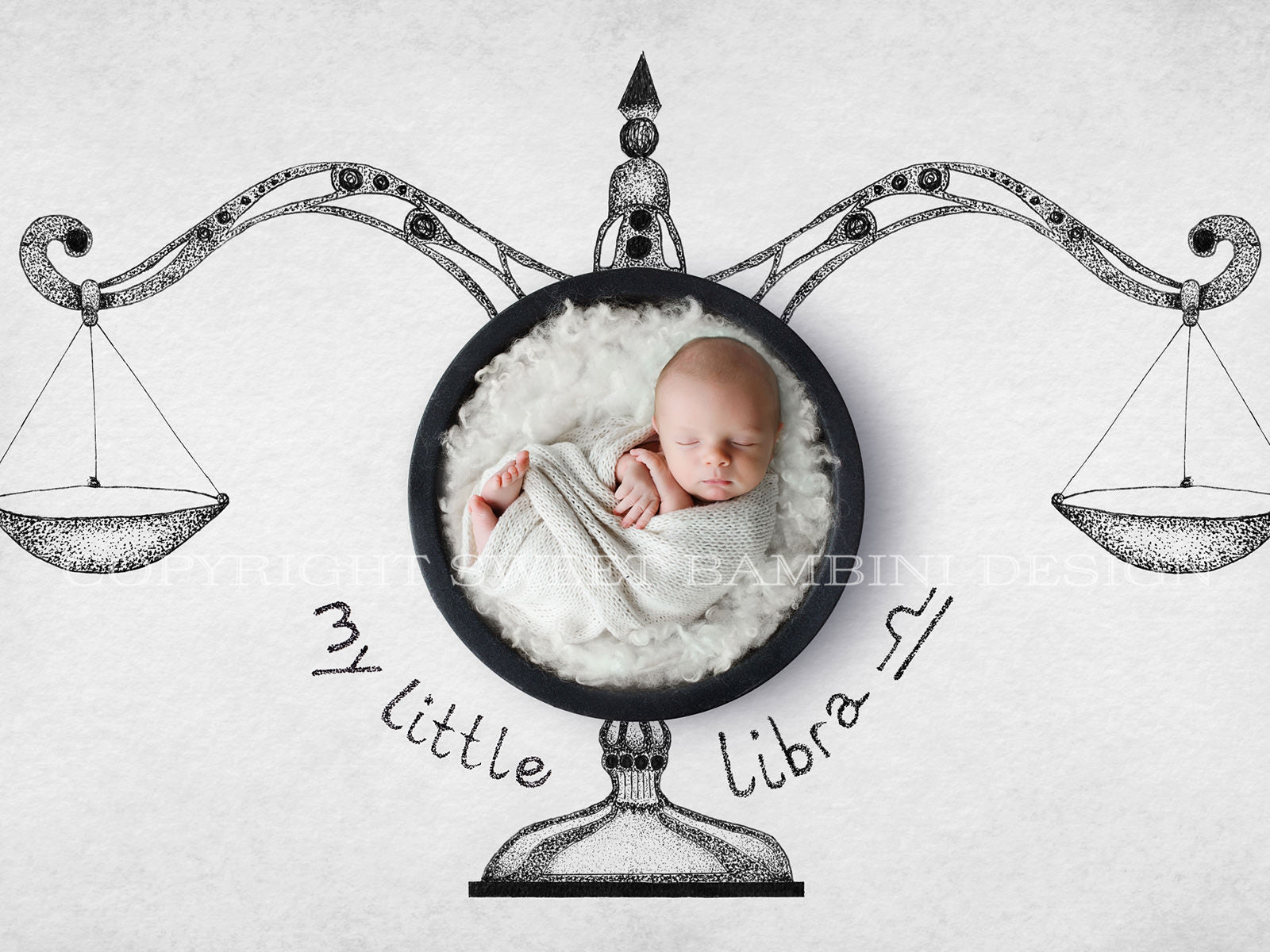 Horoscope newborn digital backdrop - LIBRA - zodiac digital with a black bowl- instant download