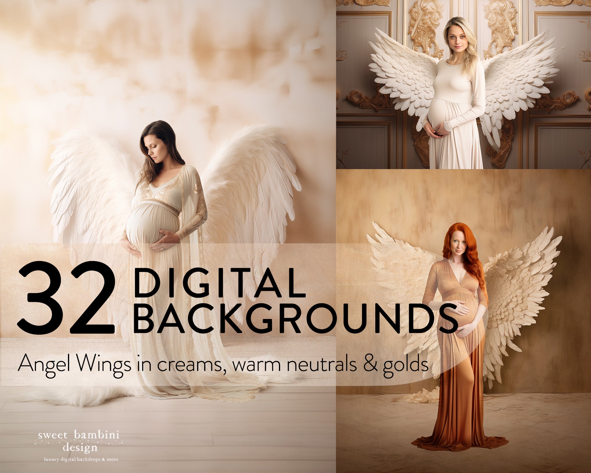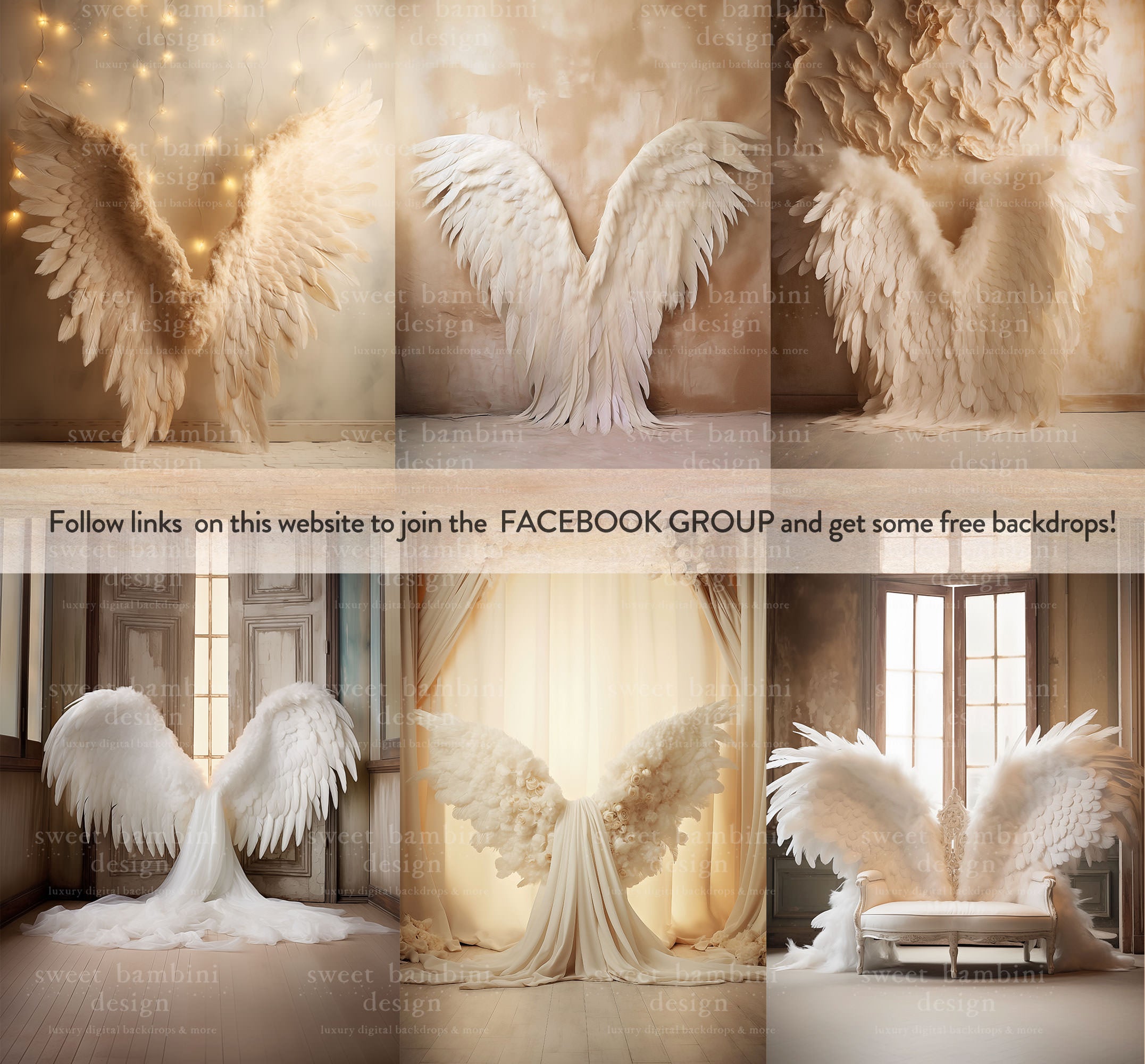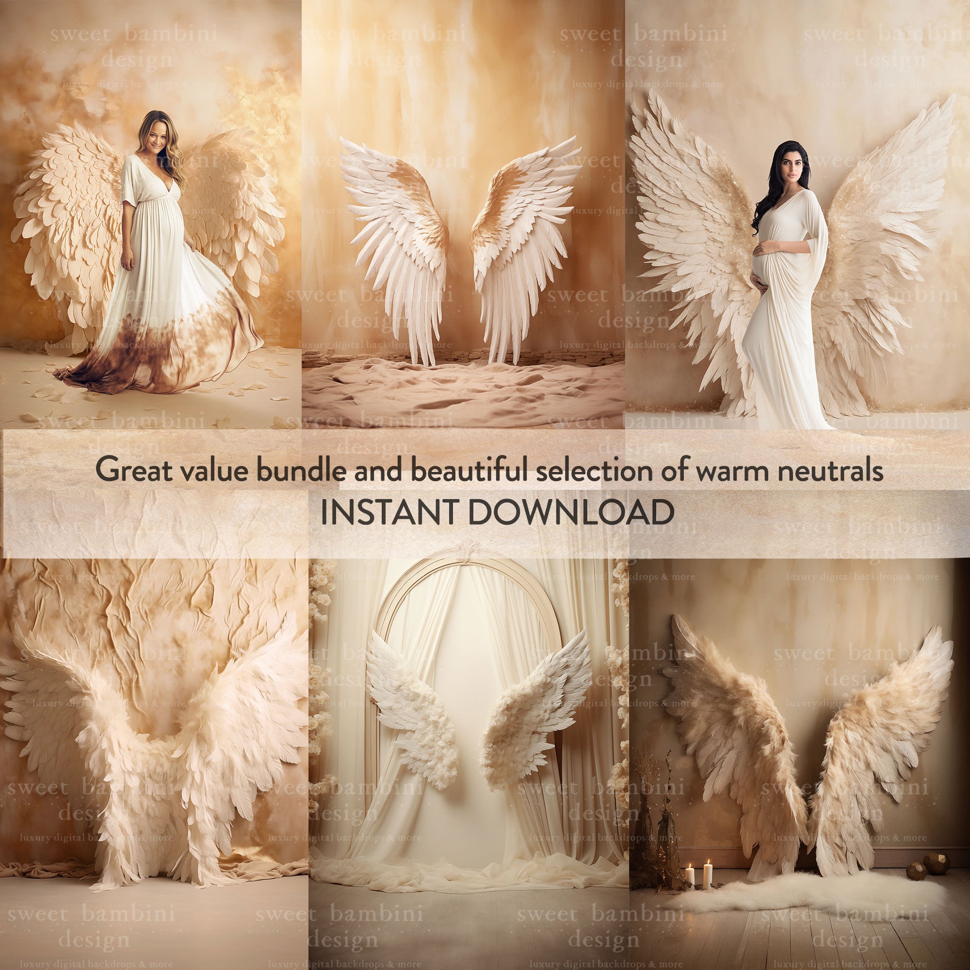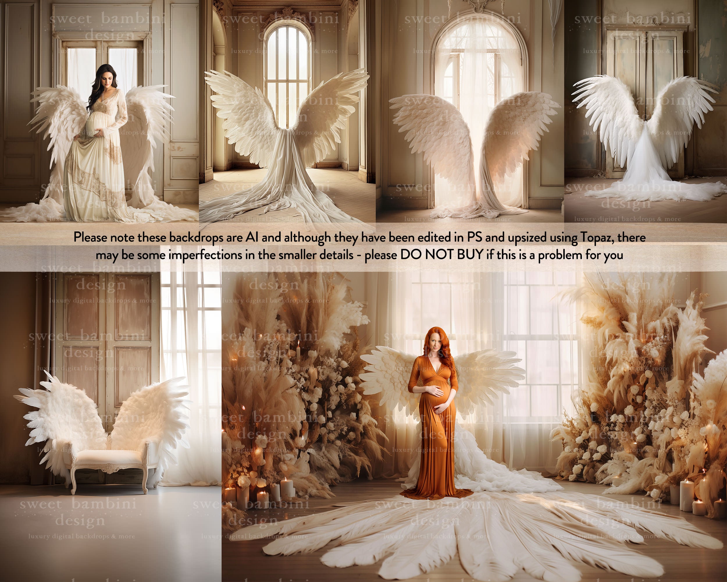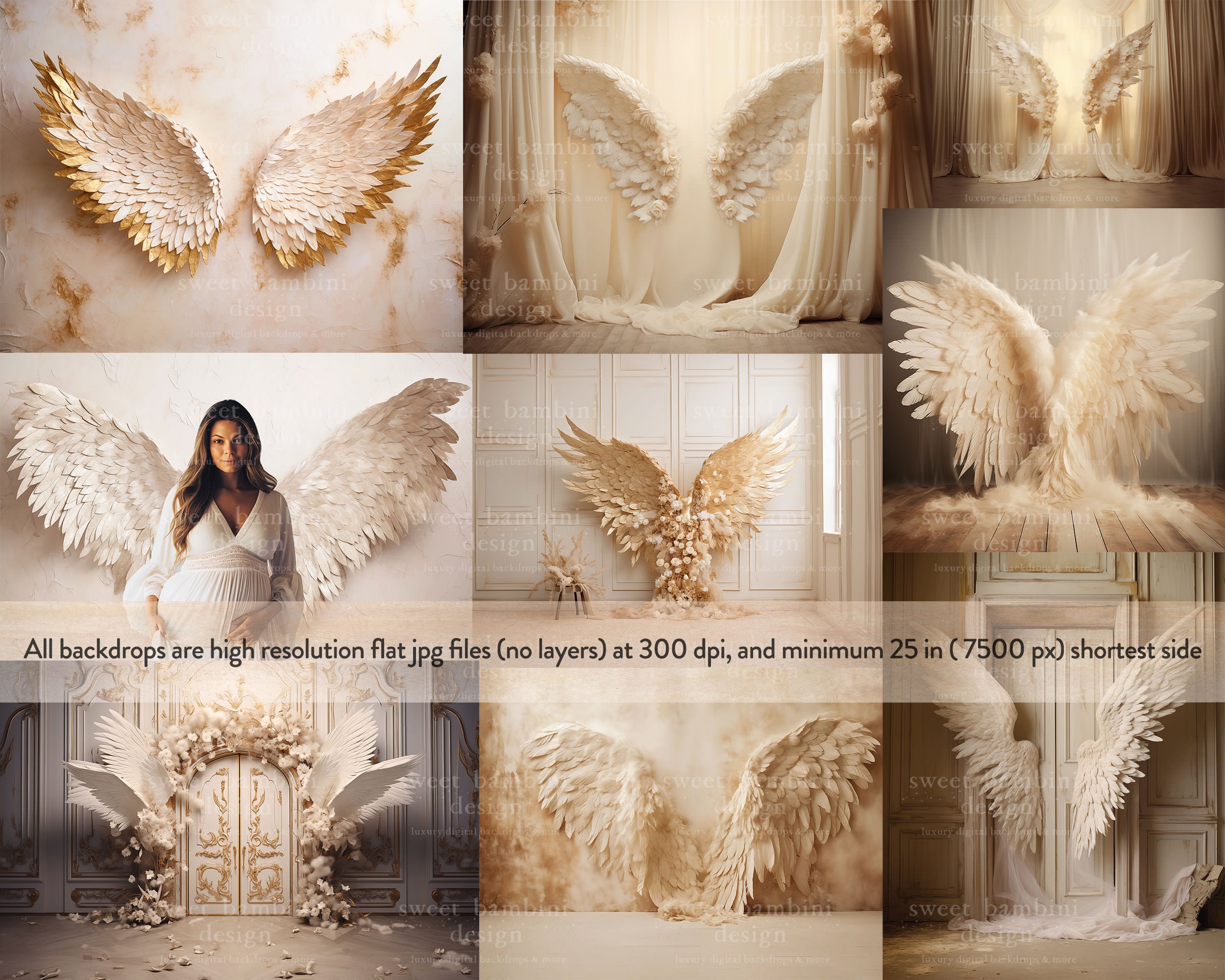 32 Angel Wings AI Digital Backdrops, perfect for maternity and bridal sessions
