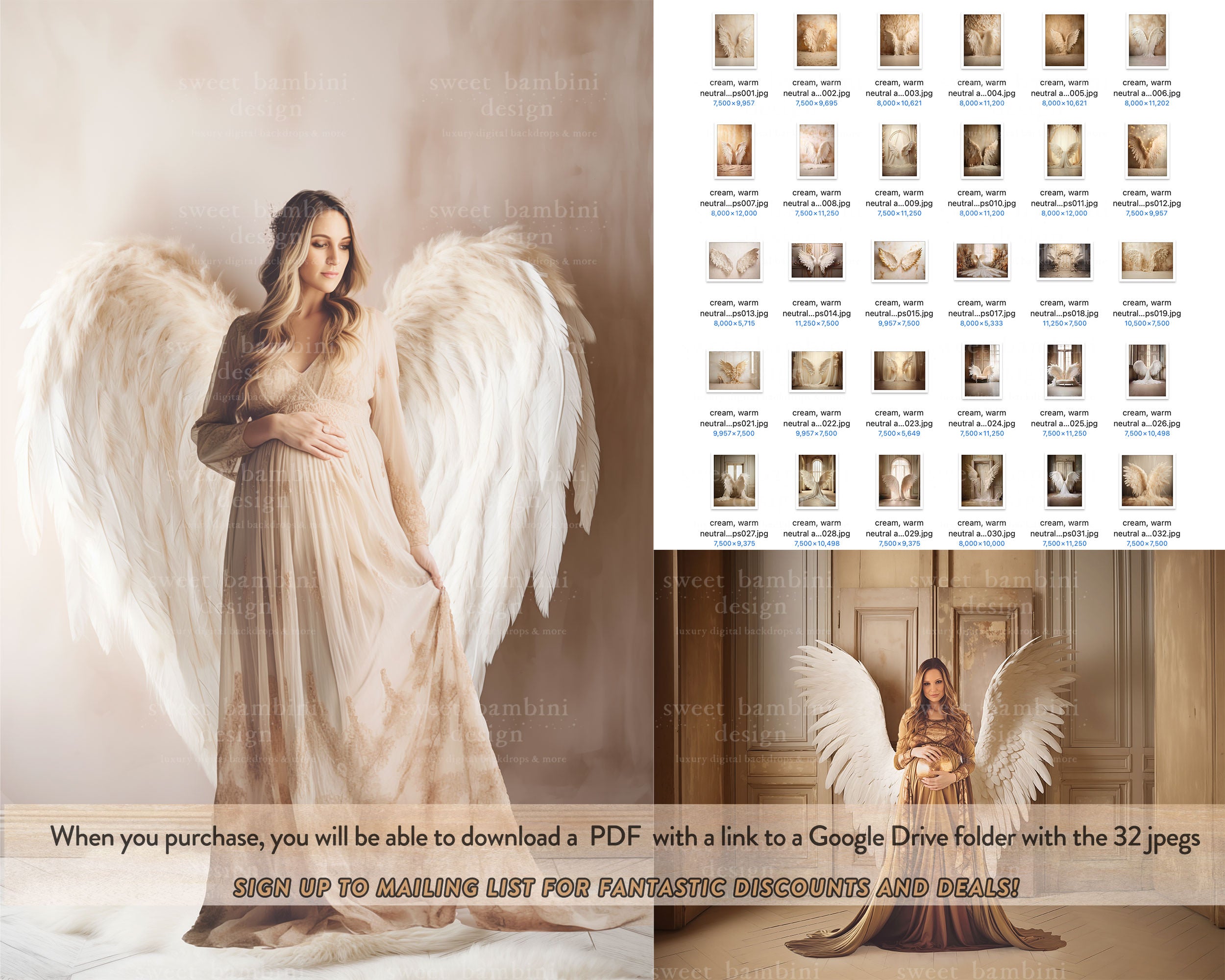 32 Angel Wings Digital Backdrops in full resolution, perfect for maternity sessions.
