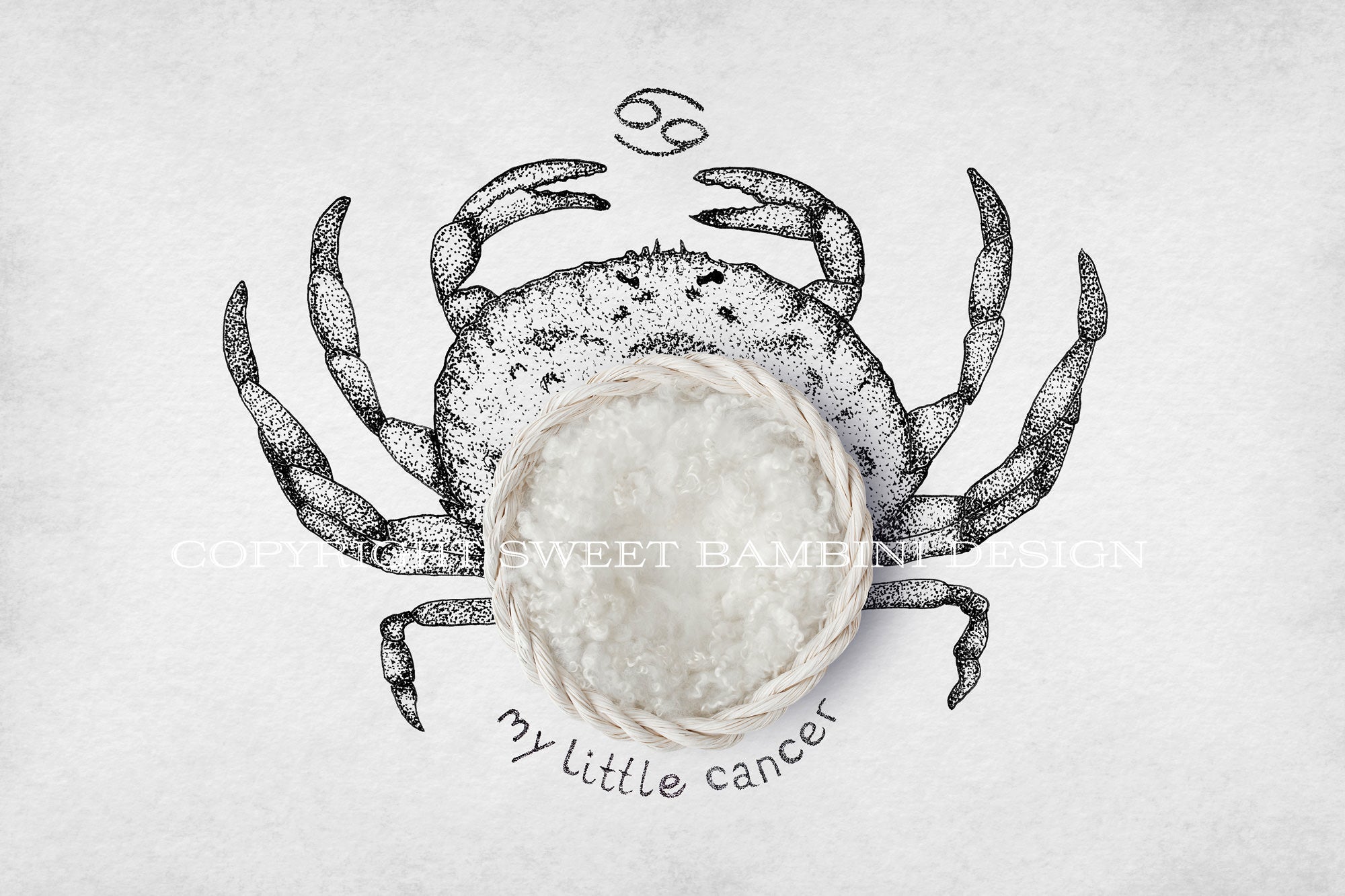 Horoscope newborn digital backdrop - CANCER - zodiac digital with a white basket- instant download
