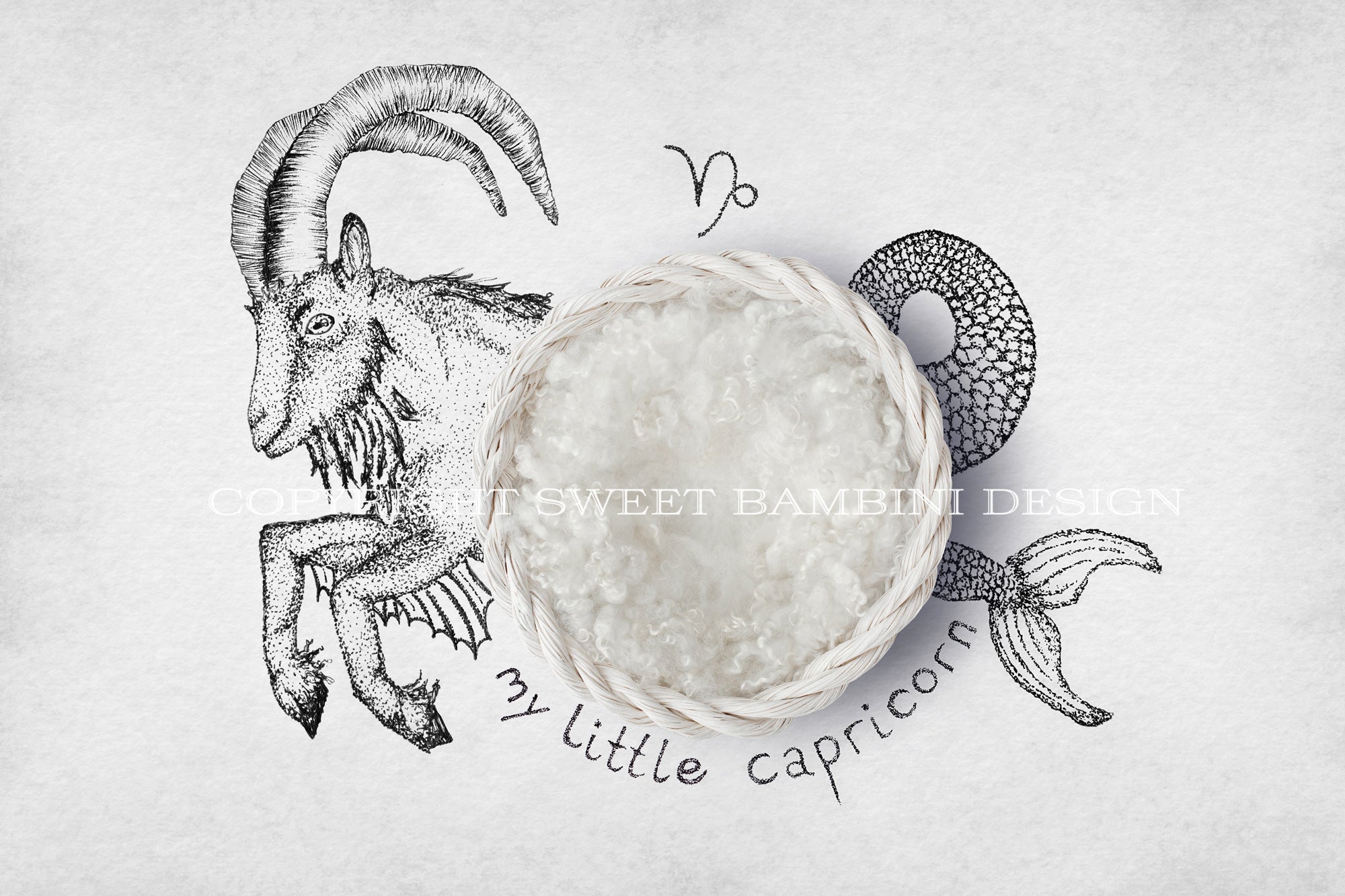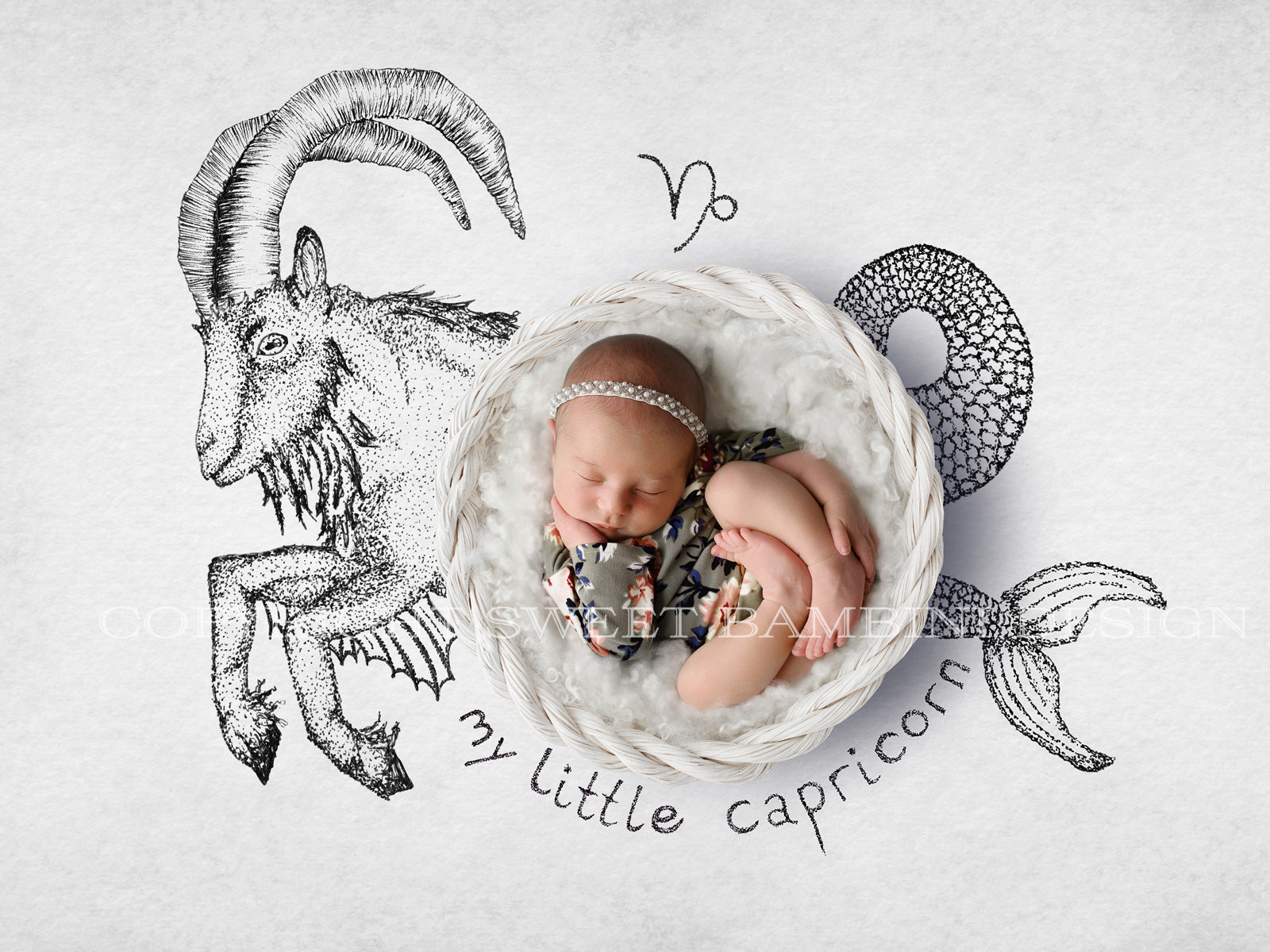 Horoscope newborn digital backdrop - CAPRICORN baby, white basket