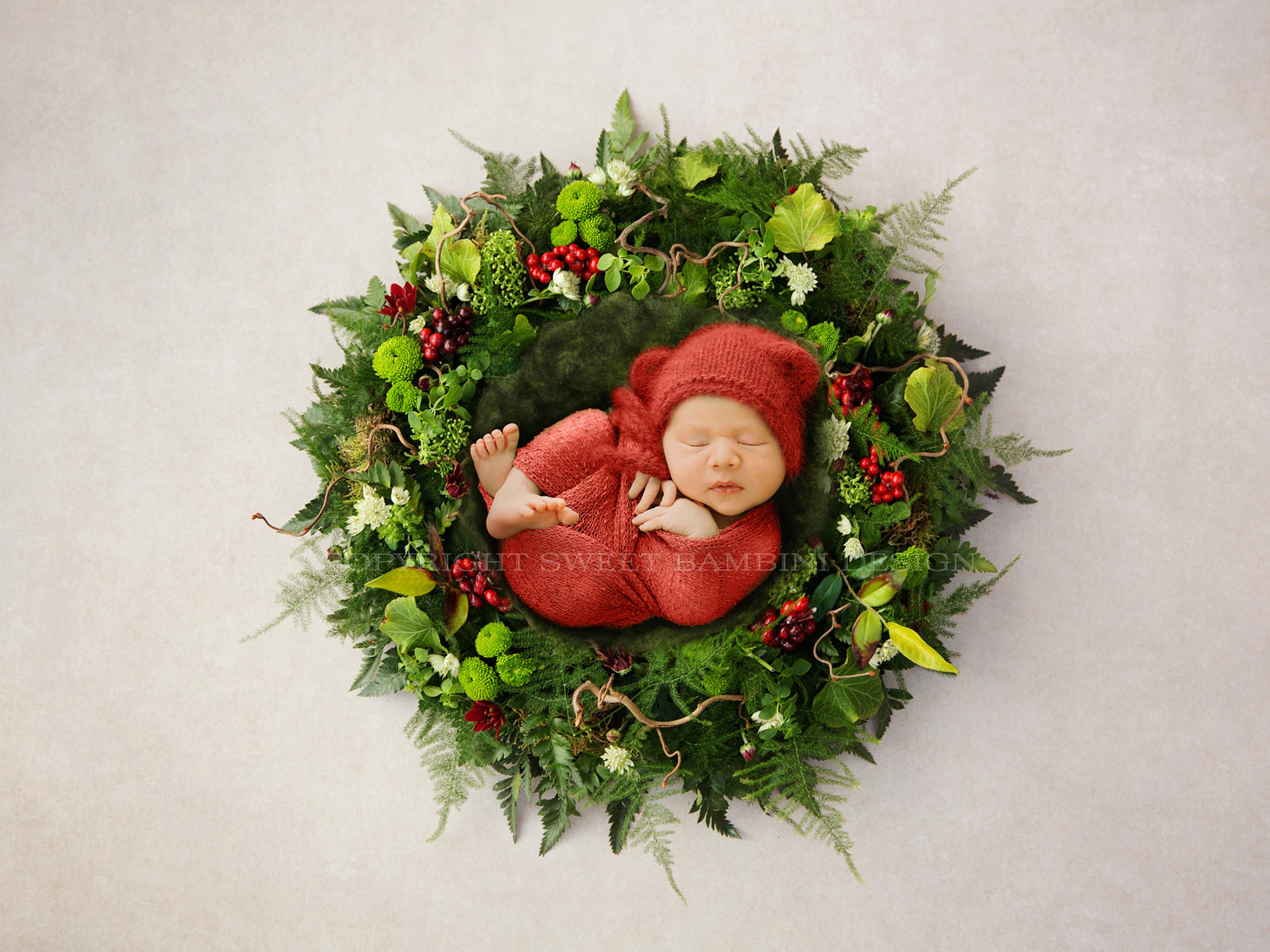 Digital Backdrop Newborn - Christmas Red Berry Nest - Noelle