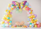 Handmade balloon arch with butterfly - beautiful Easter/Spring colours and perfect for those Easter composites.