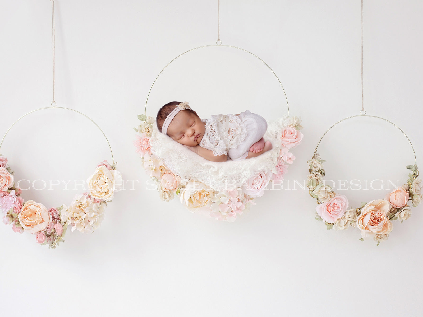 Newborn Digital Background - 3 floral hoops, vintage colours, Instant Download, Ready for you to Edit