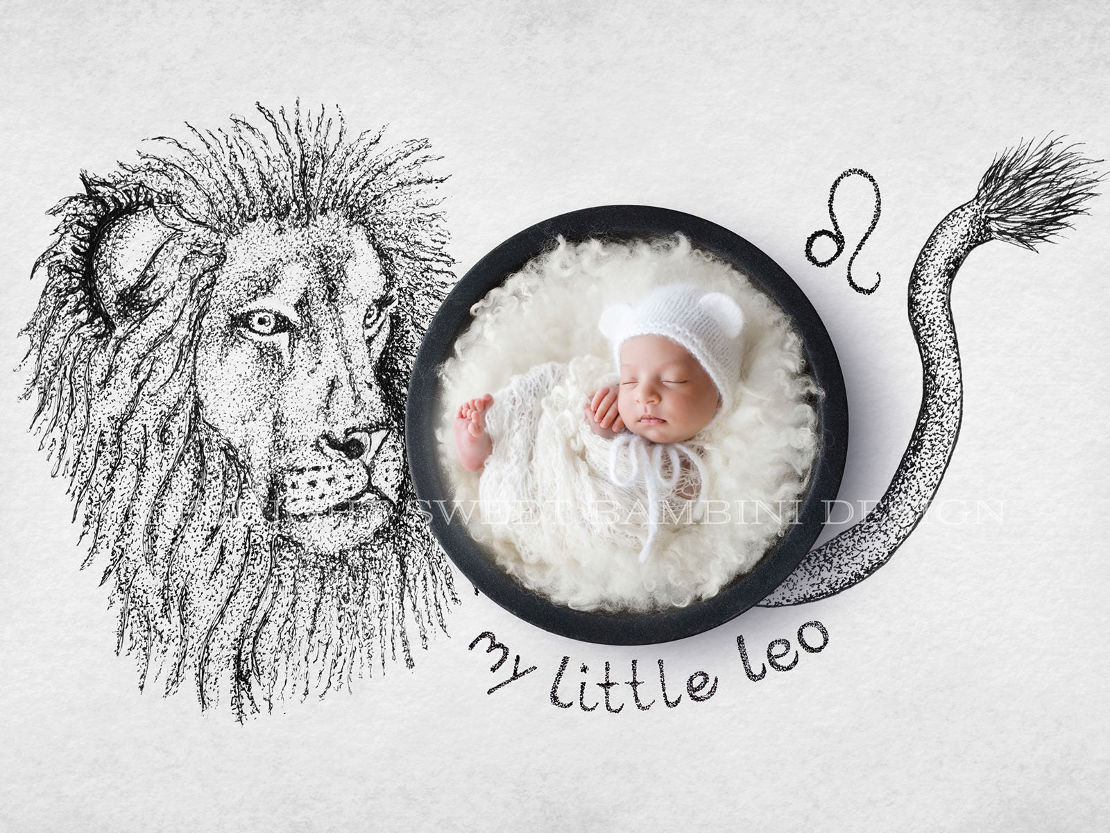 Horoscope newborn digital backdrop - LEO - zodiac digital with a black bowl- instant download