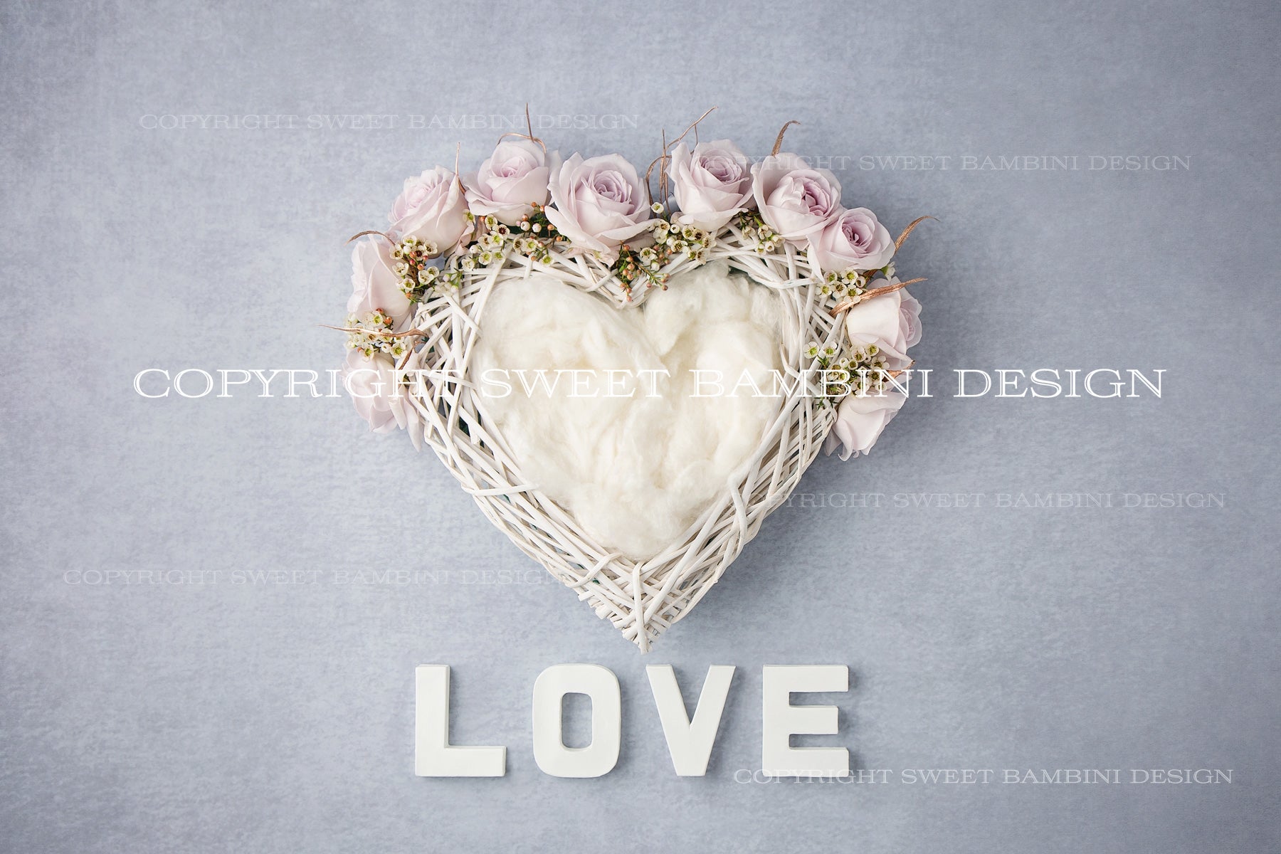 Newborn Digital Backdrop for newborns - heart shaped wicker nest with gentle pink fresh roses