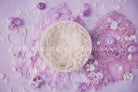 Newborn Digital Backdrop for girls - Simple white bowl on a purple/magenta background with flowers and pearls