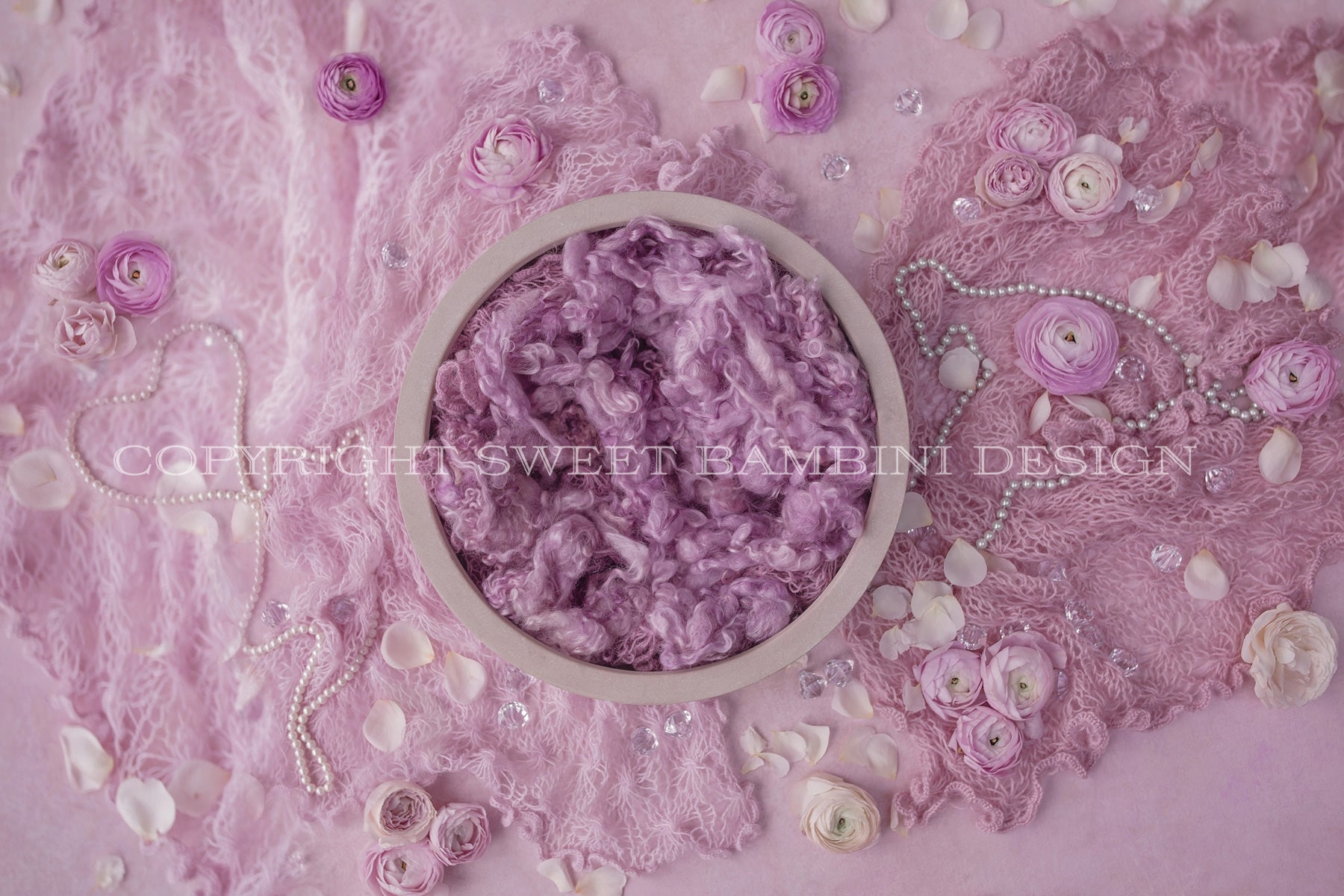 Newborn Digital Backdrop for girls - Simple white bowl, on a dusky purple background with purple middle with pearls