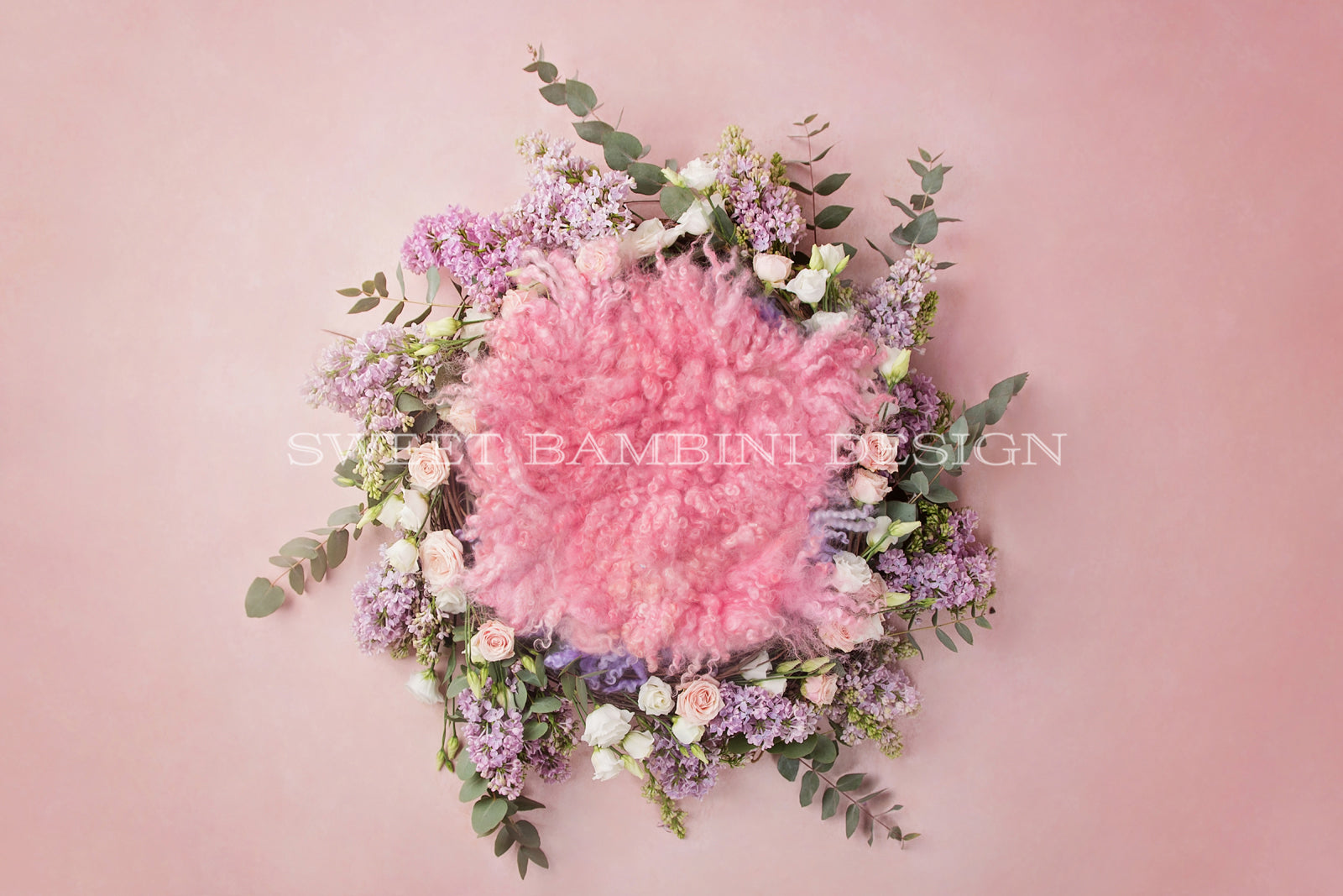 Newborn Digital Backdrop - instant download - Lila flower nest