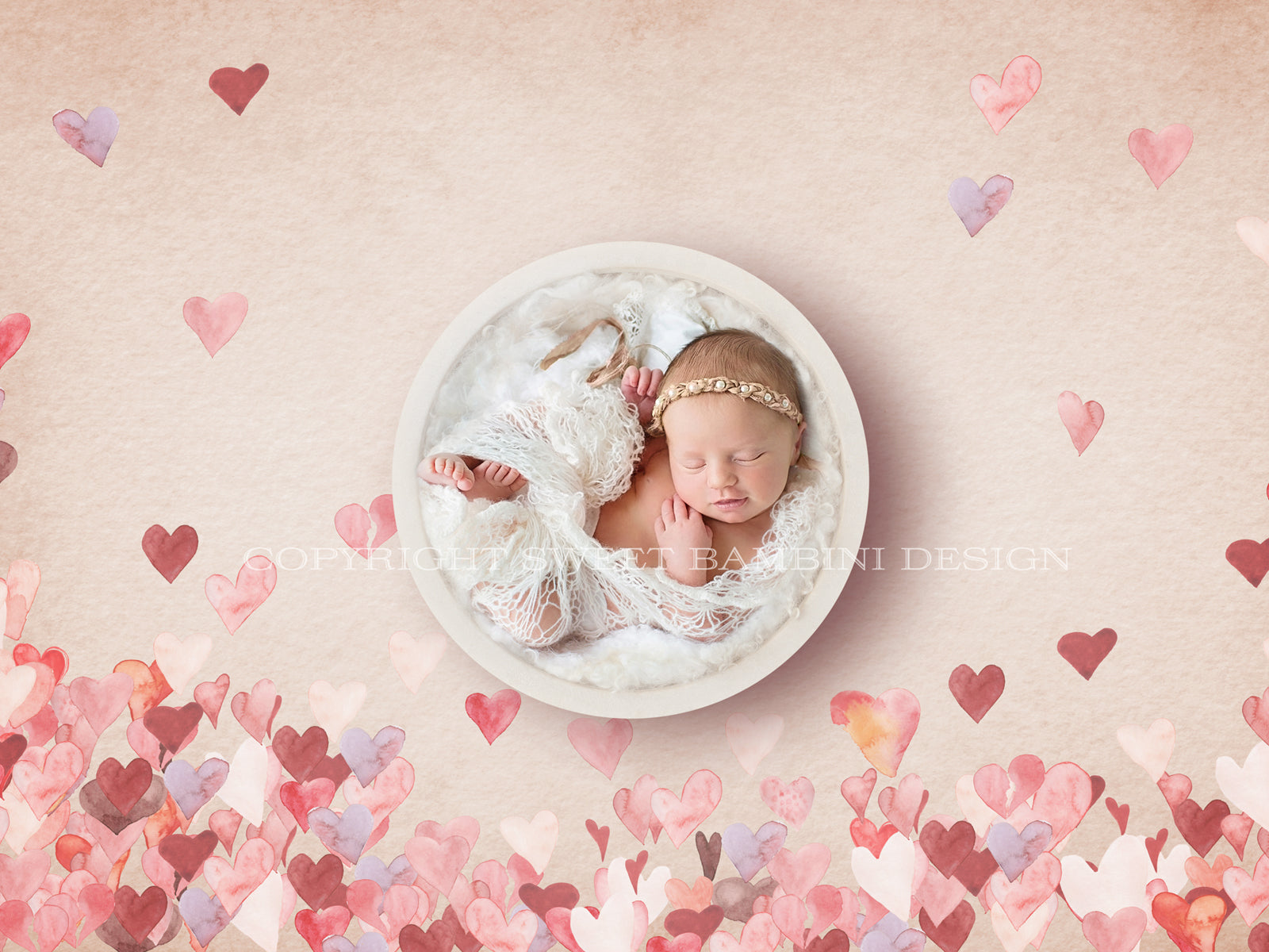 Newborn Digital Backdrop - Instant Download, Unisex digital, Watercolour digital, Hearts backdrop