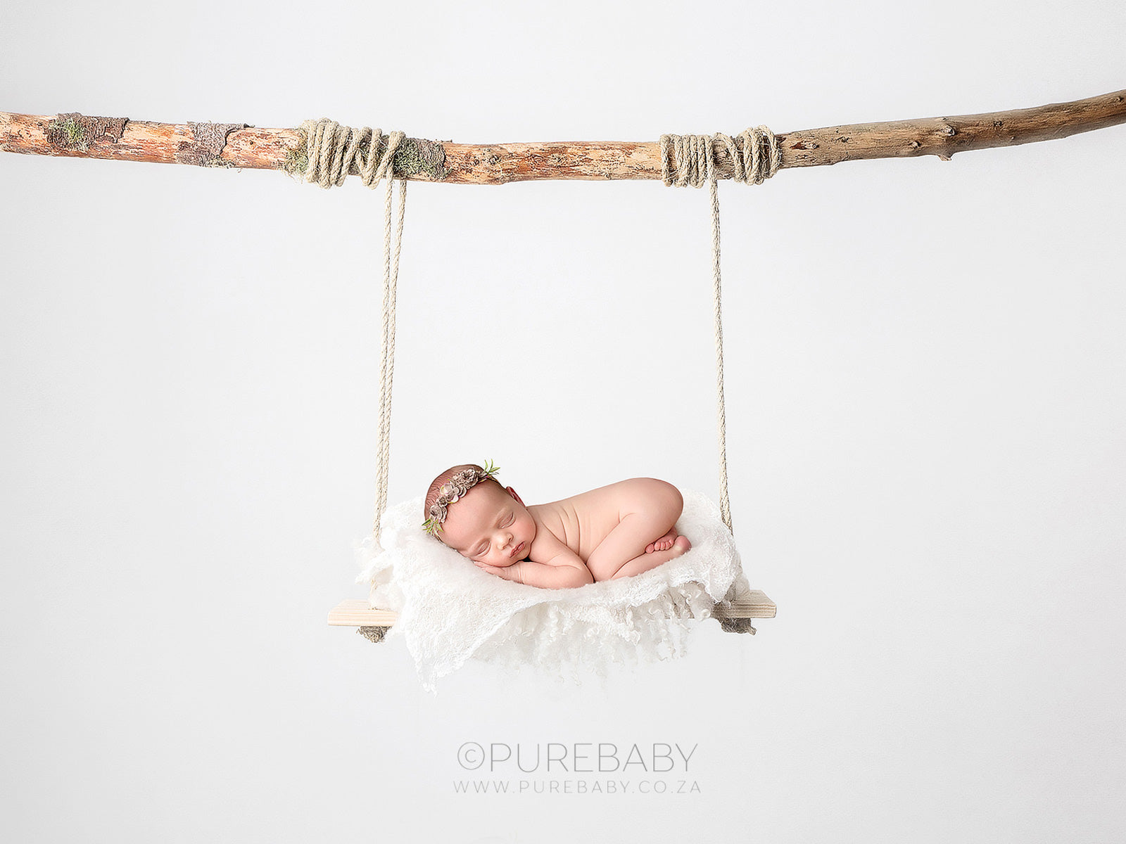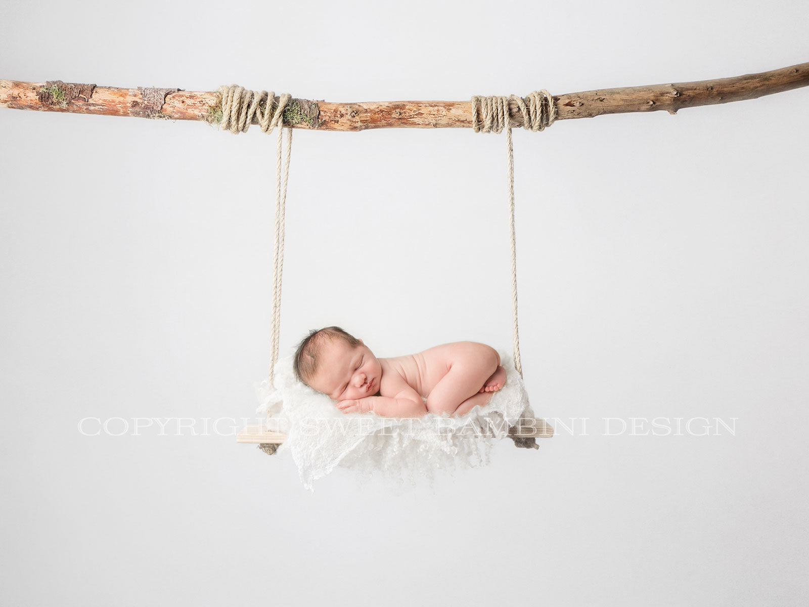 Newborn Digital Backdrop - natural wooden swing.