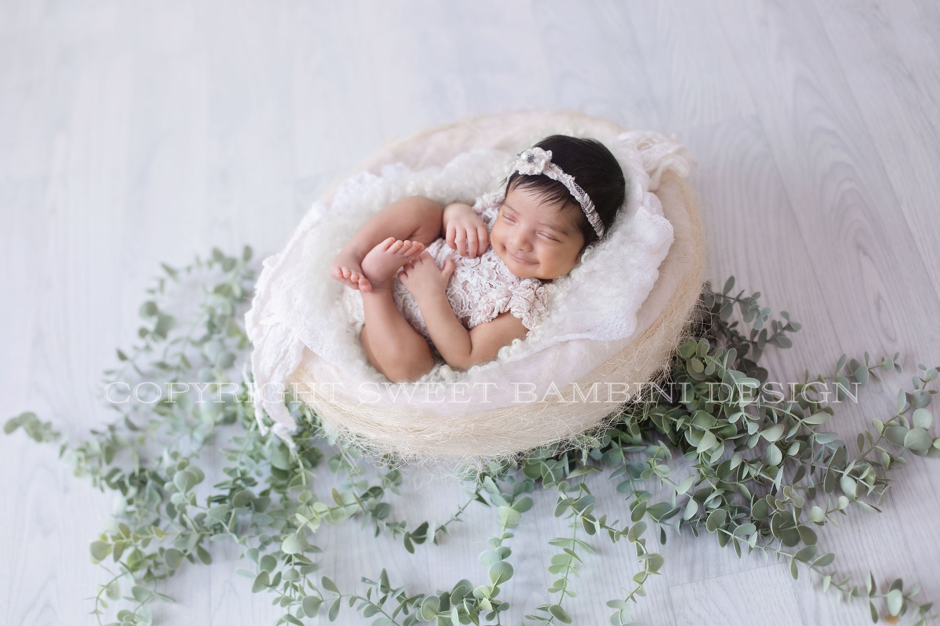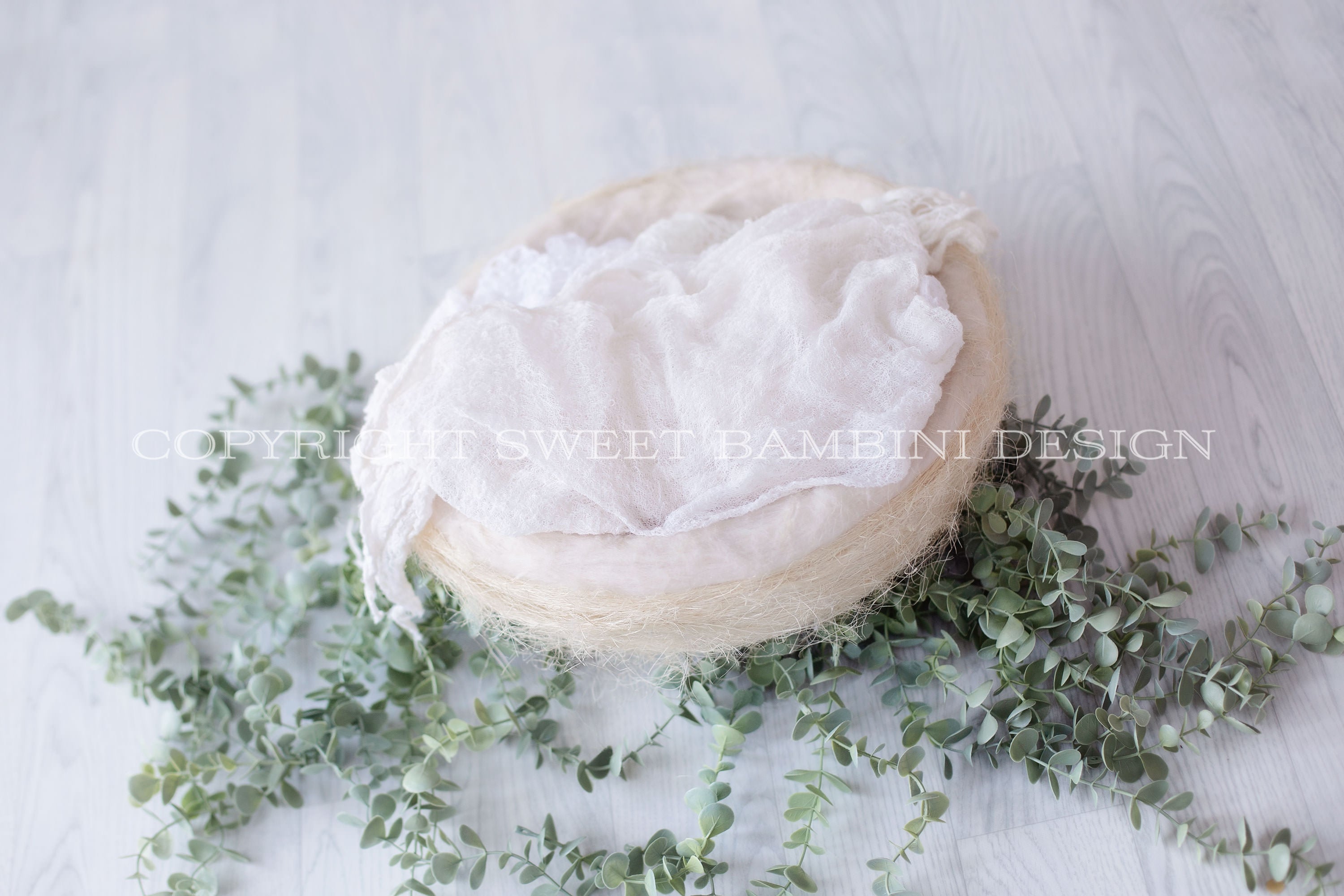 Newborn Digital Backdrop - Simple organic white nest with eucalyptus - shot from side