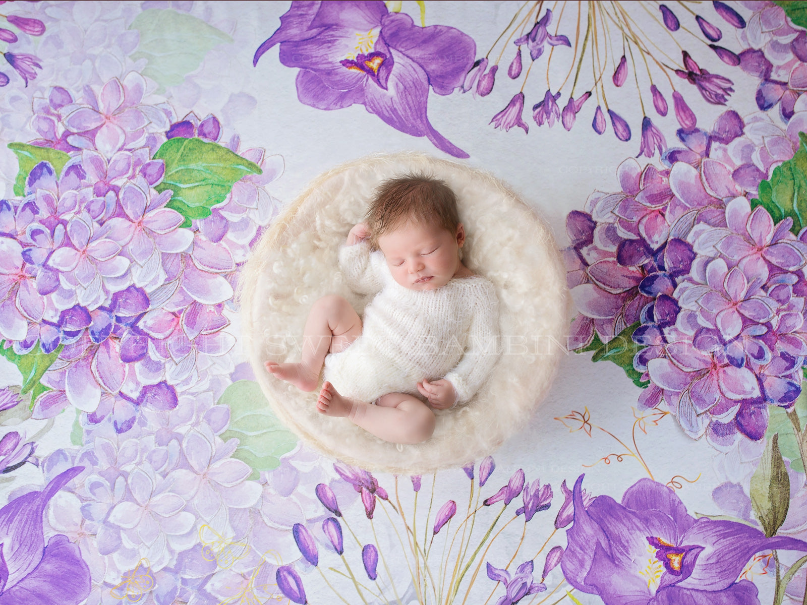 Newborn Digital Backdrop - Watercolour backdrop with lilacs and spring flowers and a simple white nest