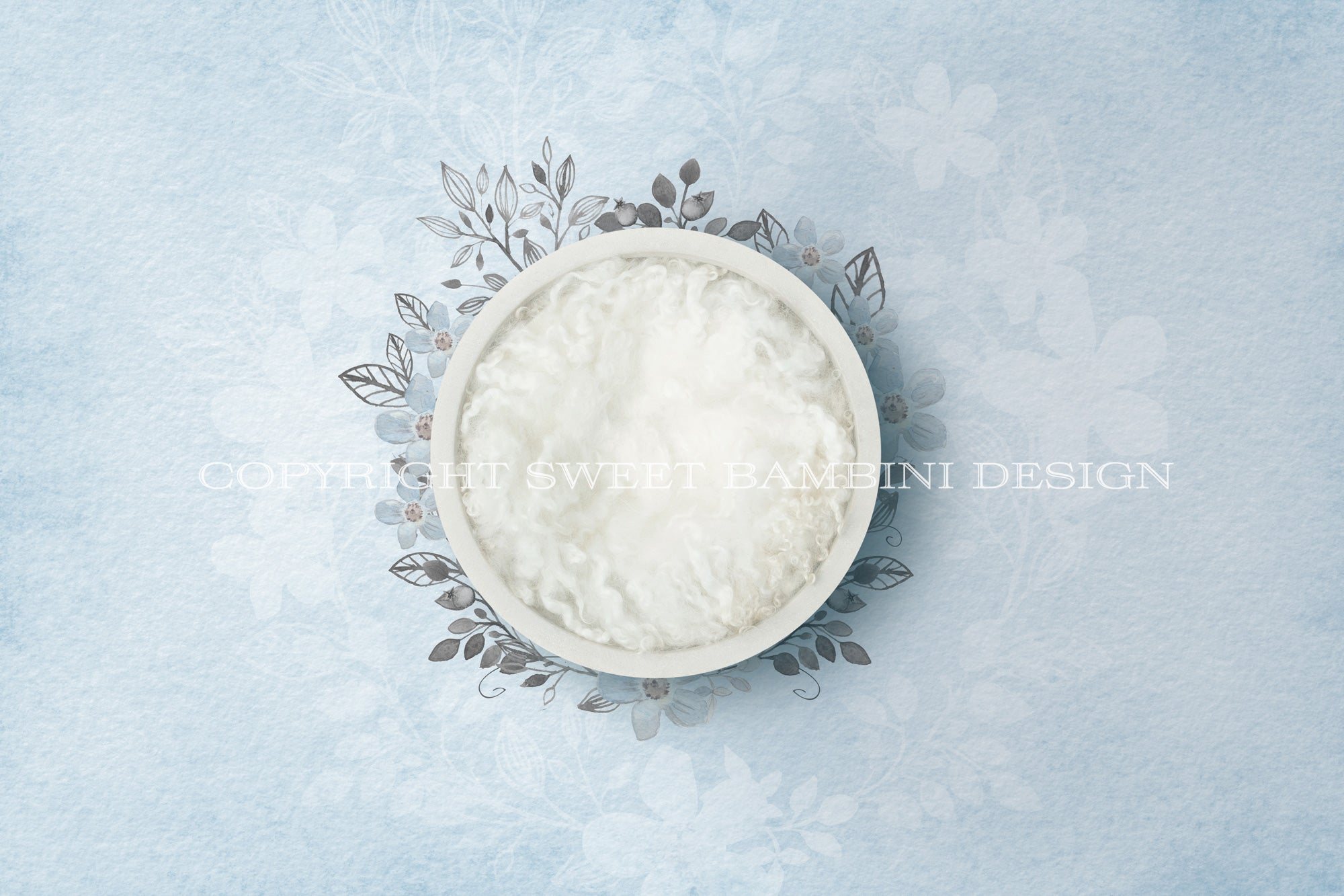 Newborn Digital Backdrop - White bowl and Watercolour Flowers - Instant Download - Watercolour digital