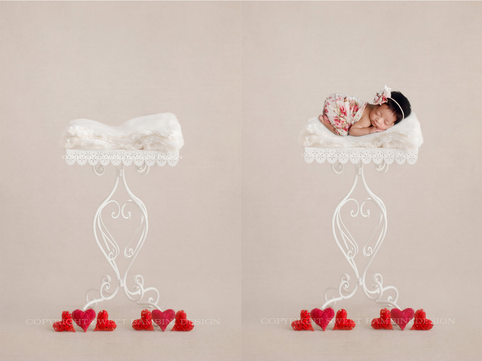 Newborn Digital Background - White Iron Stand with Red Hearts