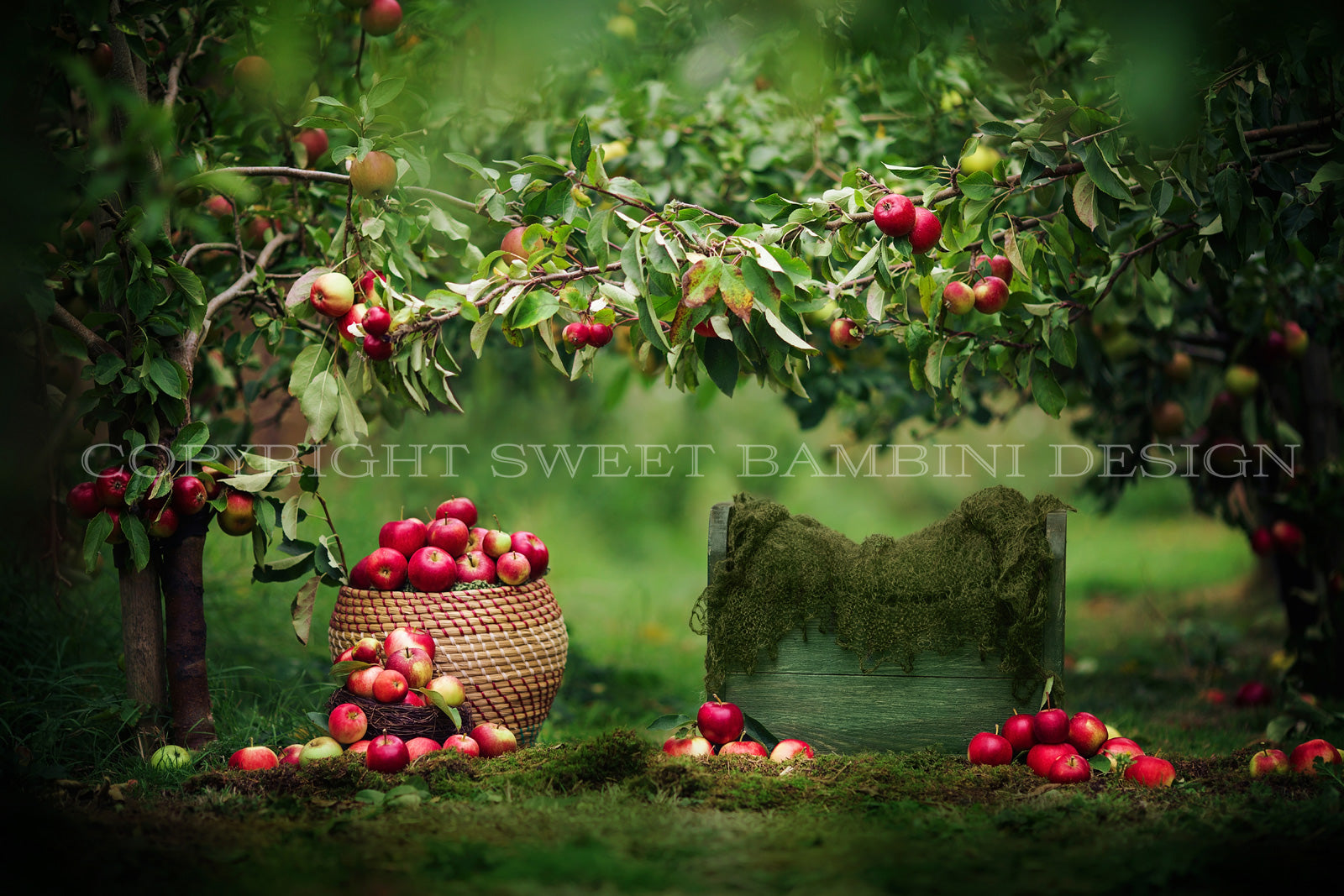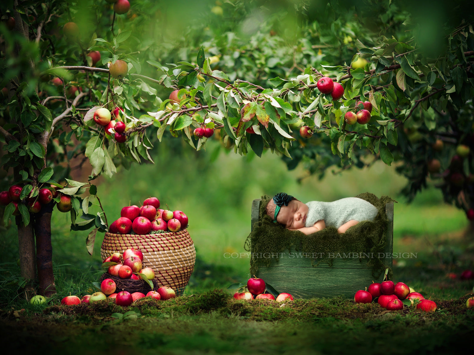 Newborn Photography Digital Backdrop for girls or boys - Little Bed under the apple trees