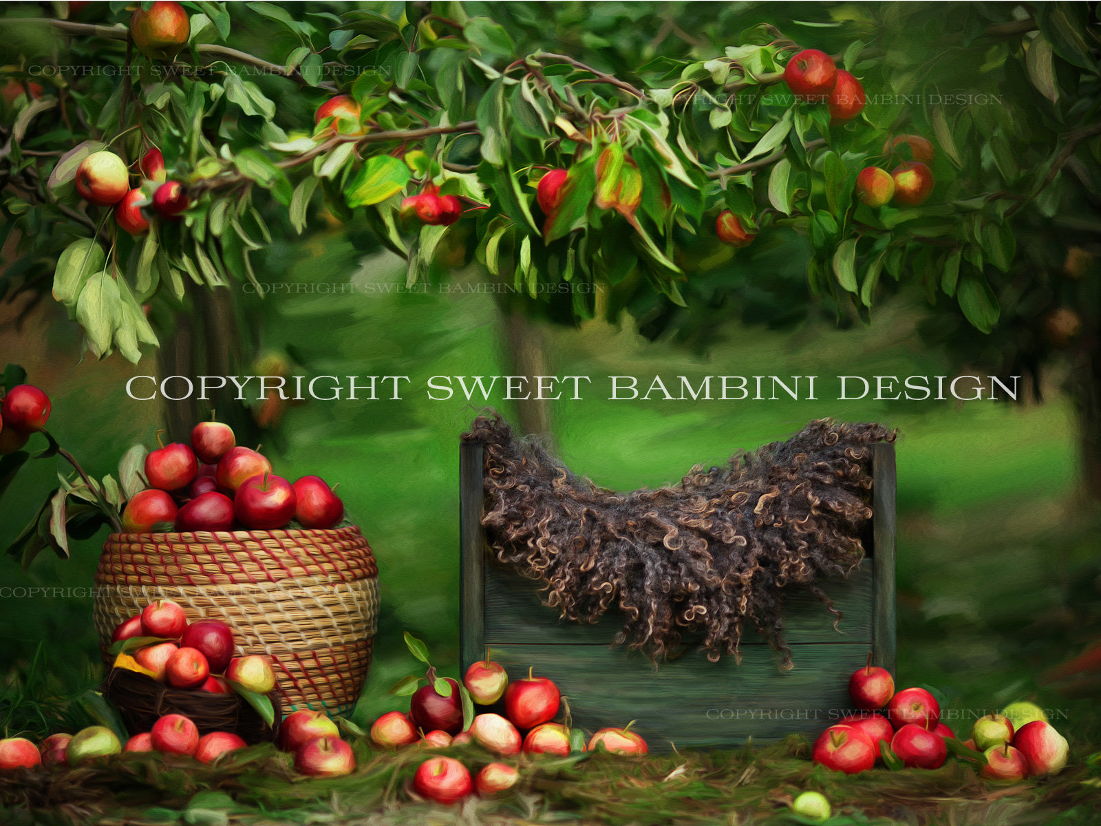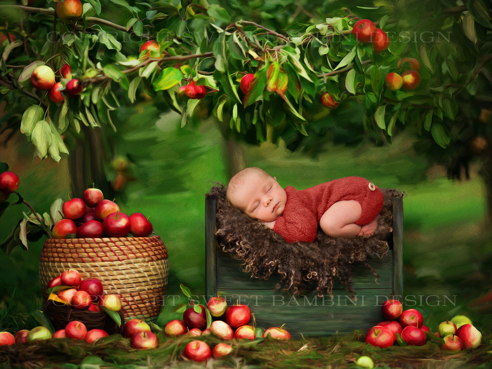 Painted Newborn Digital Backdrop for boys and girls "Under the apple tree" .