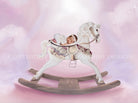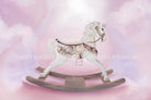 Gorgeous fantasy rocking horses on a watercolor effect backdrop with mixed baby pink/lilac/white tones.