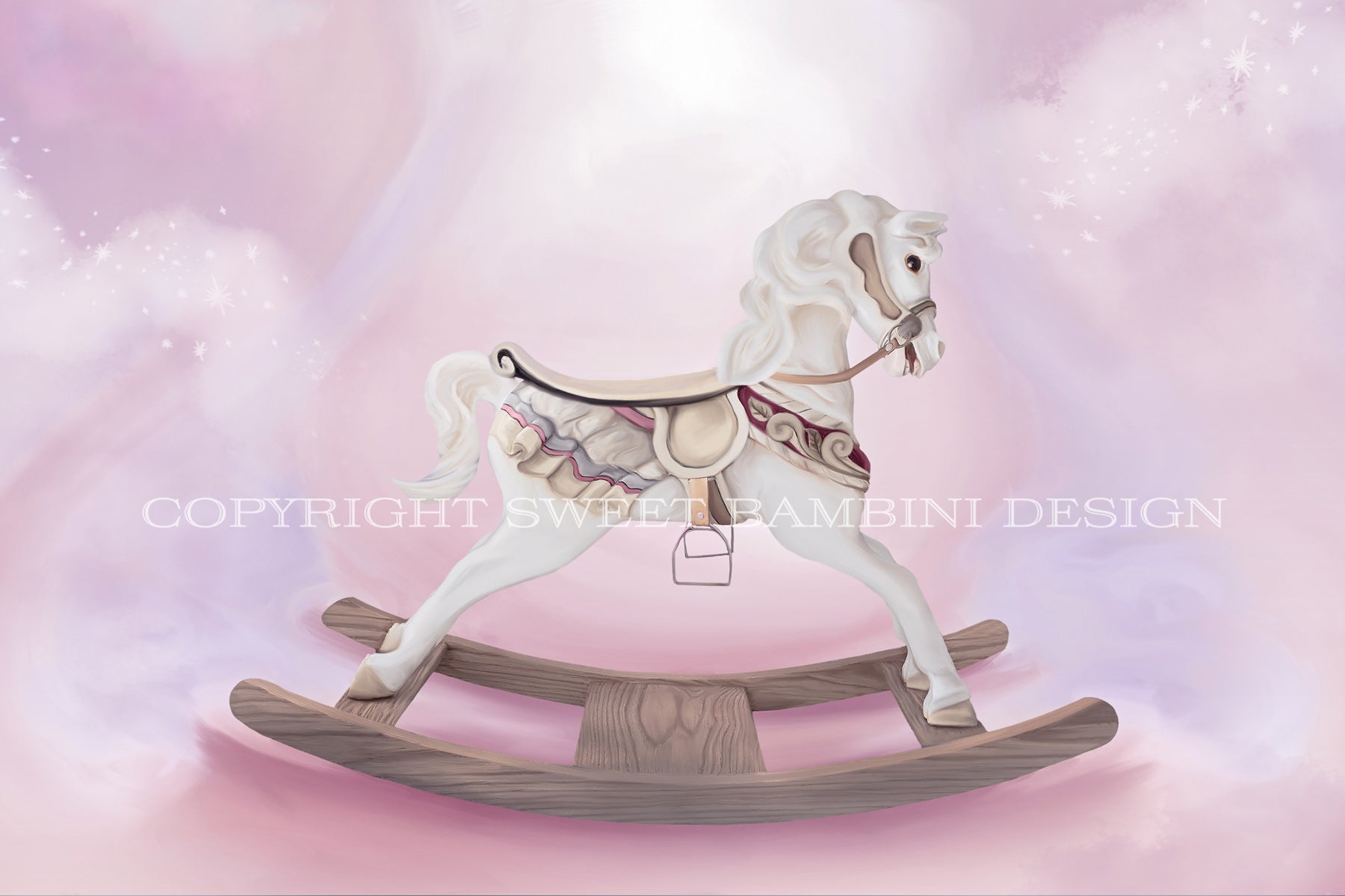 Rocking Horse Newborn Digital Backdrop on candy pink/lilac/white background