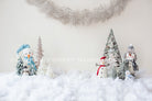 Sitter Digital Photography Backdrop - Lovely little Christmas scene, with cute snowmen, Christmas trees and a sparkly Christmas garland.