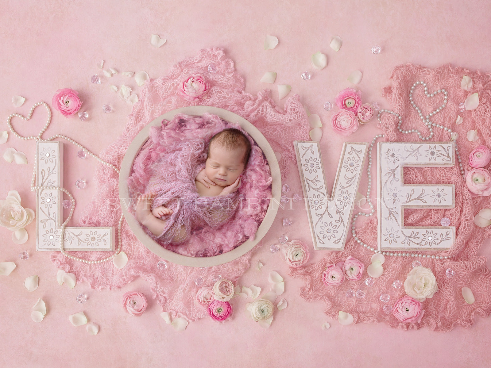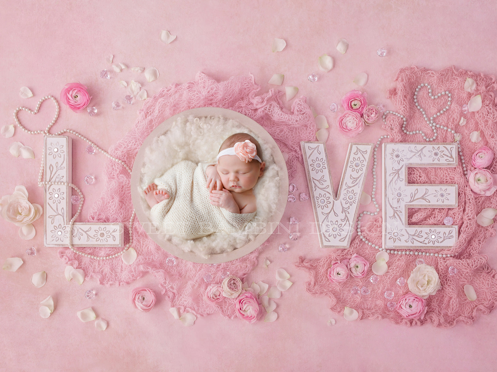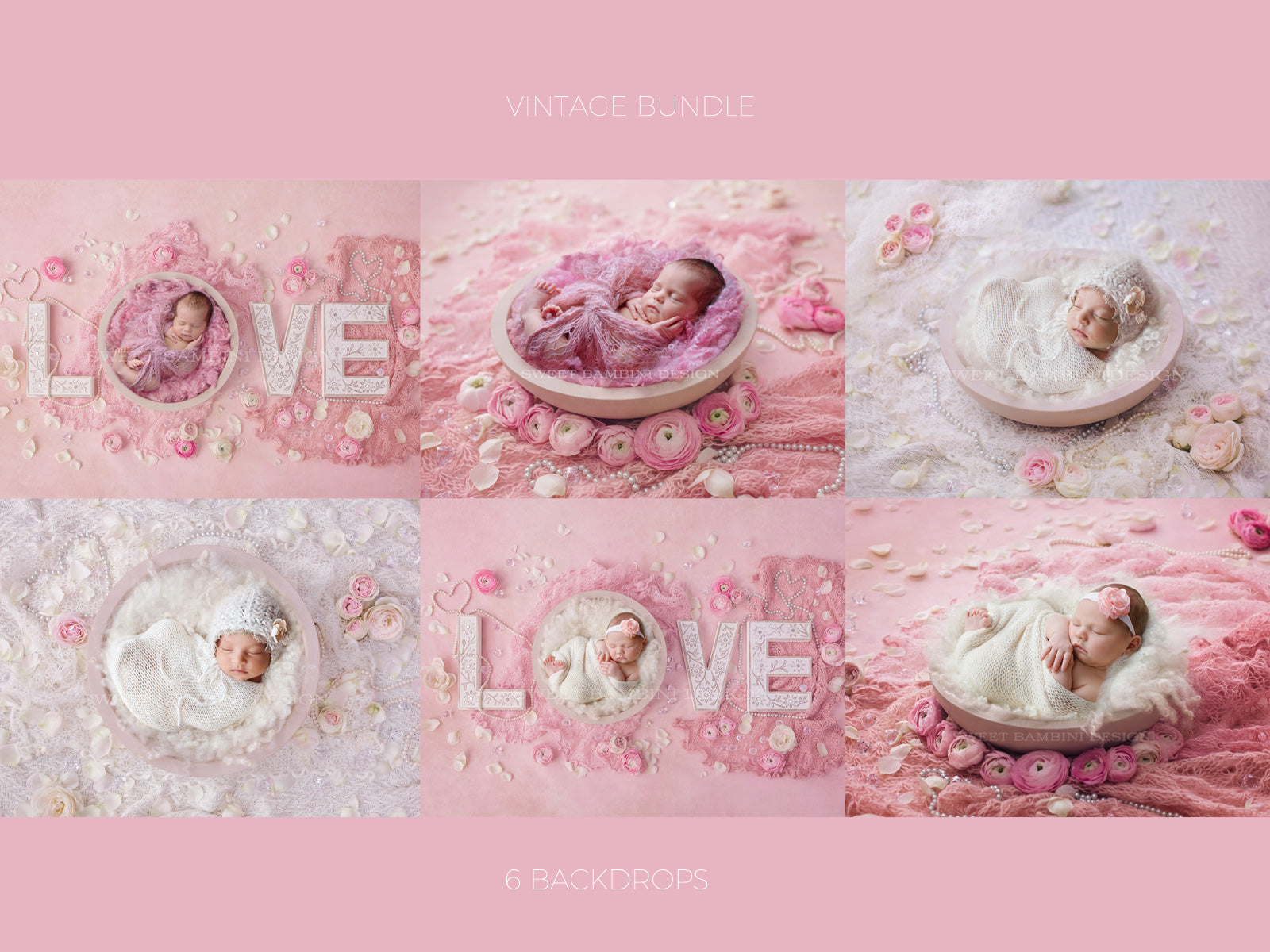 3 - Newborn Digital Backdrop for girls - Vintage Love with cream middle