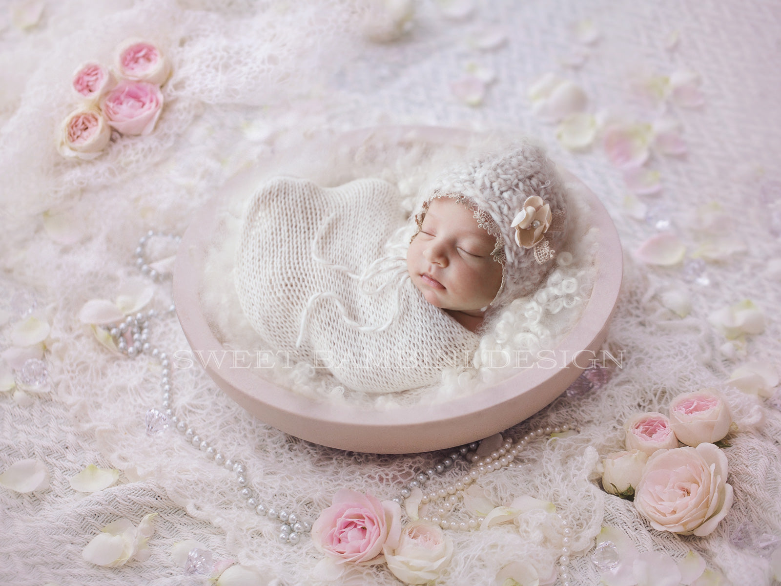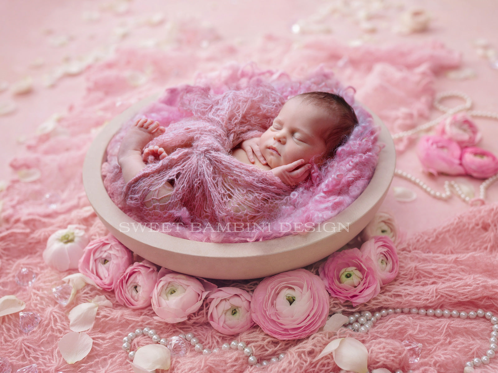 1 - Newborn Digital Backdrop for girls - Vintage Love - Pearls, roses and ranunculus - pink middle