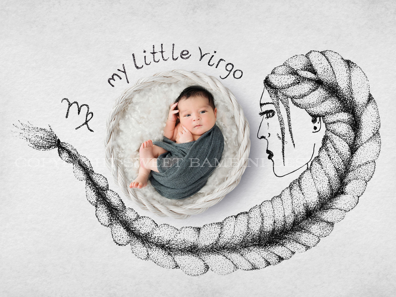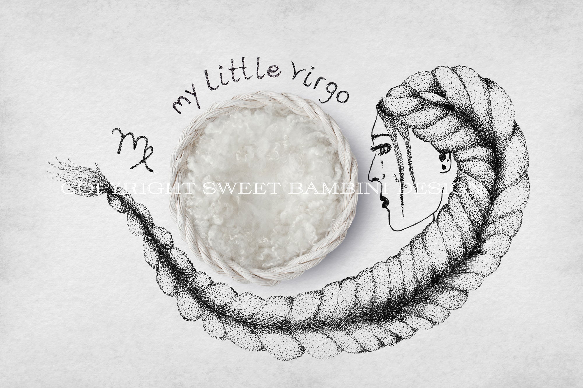 Horoscope newborn digital backdrop - VIRGO - zodiac digital with a white basket- instant download