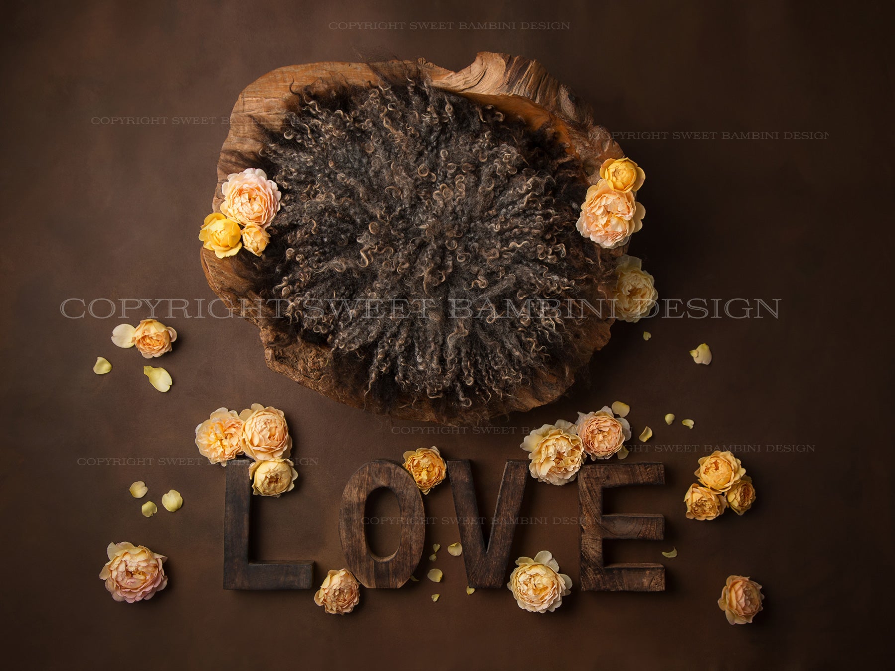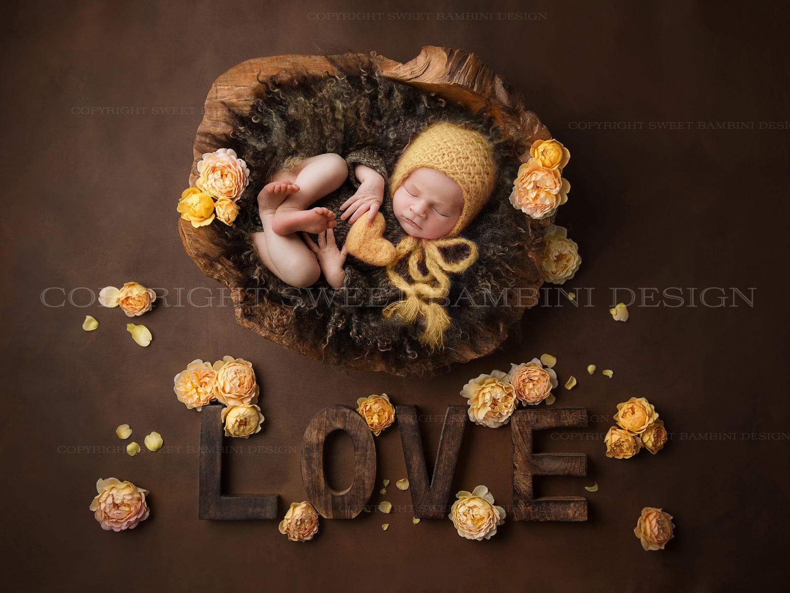 Newborn Digital Backdrop for boys or girls - Rustic Love with a wooden bowl and lemon roses