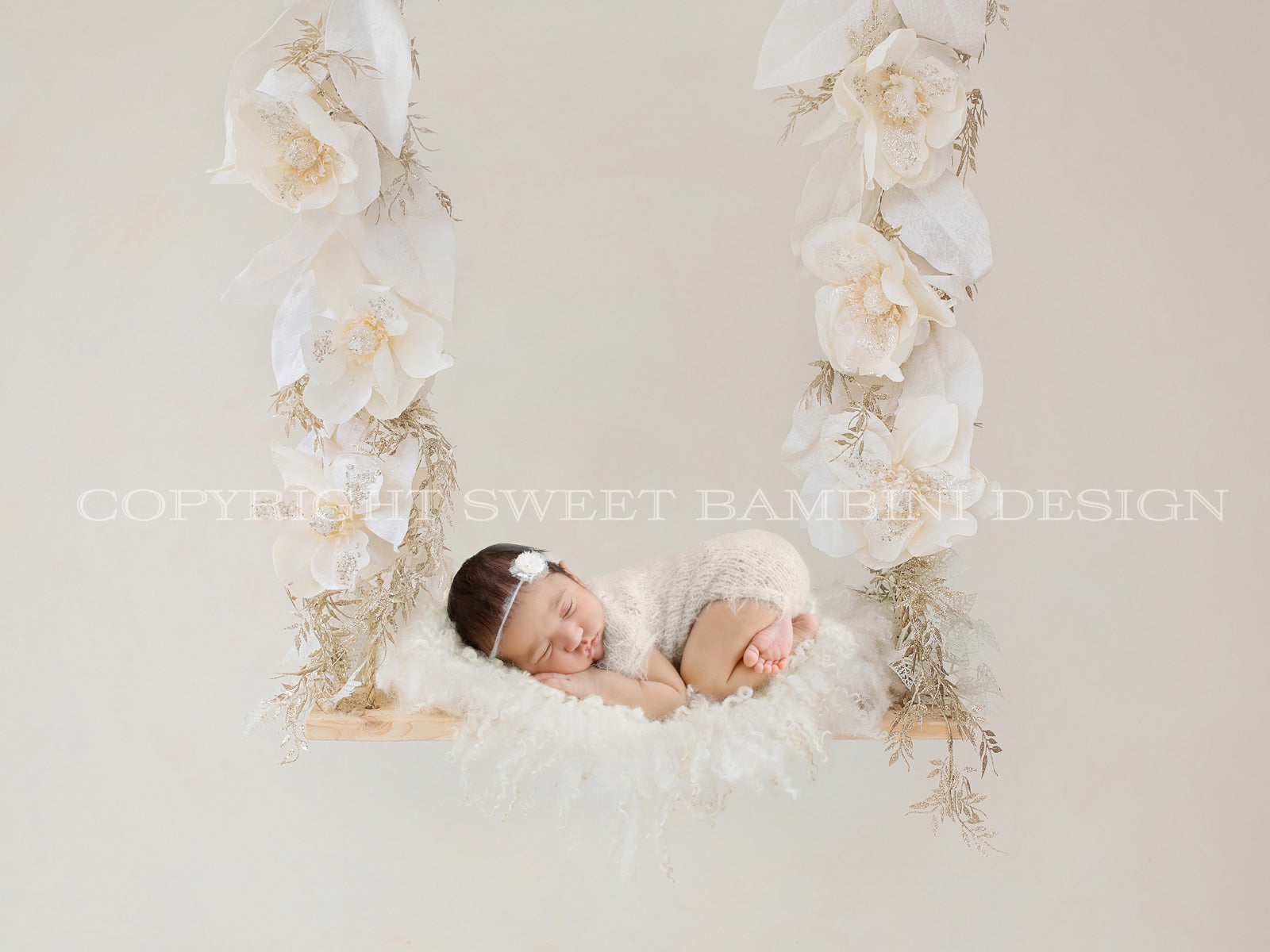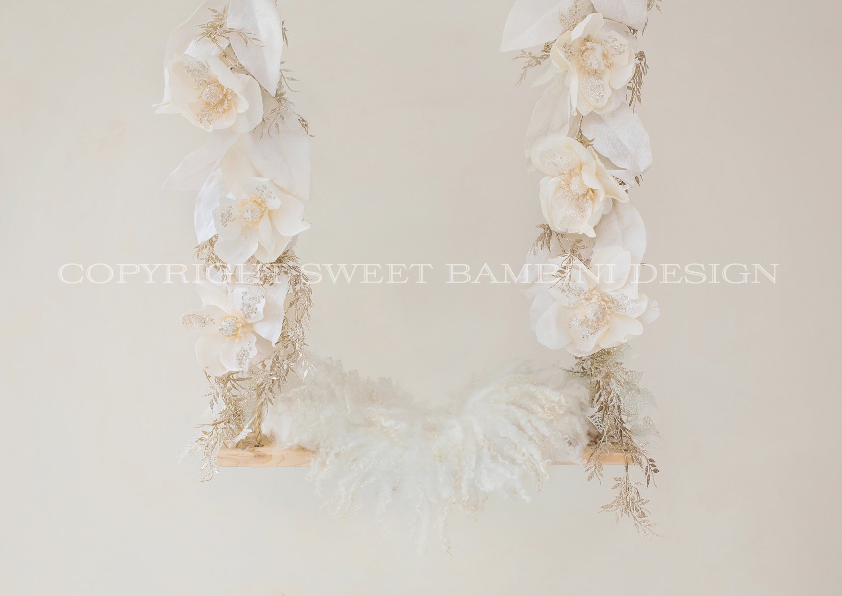 Newborn Digital Backdrop - Beautiful Christmas swing, in shades of cream, white and gold - perfect if you love neutral backdrops.