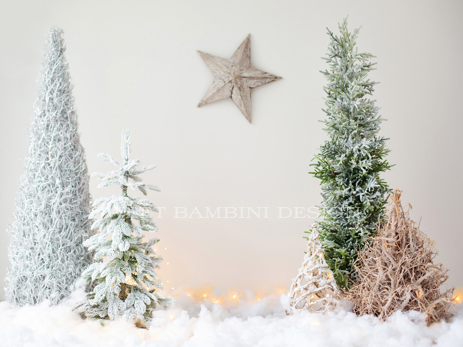 Sitter Digital Photography Backdrop - Lovely little Christmas scene, with and assortment of different trees.