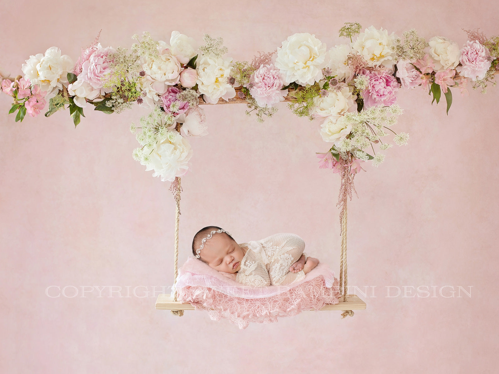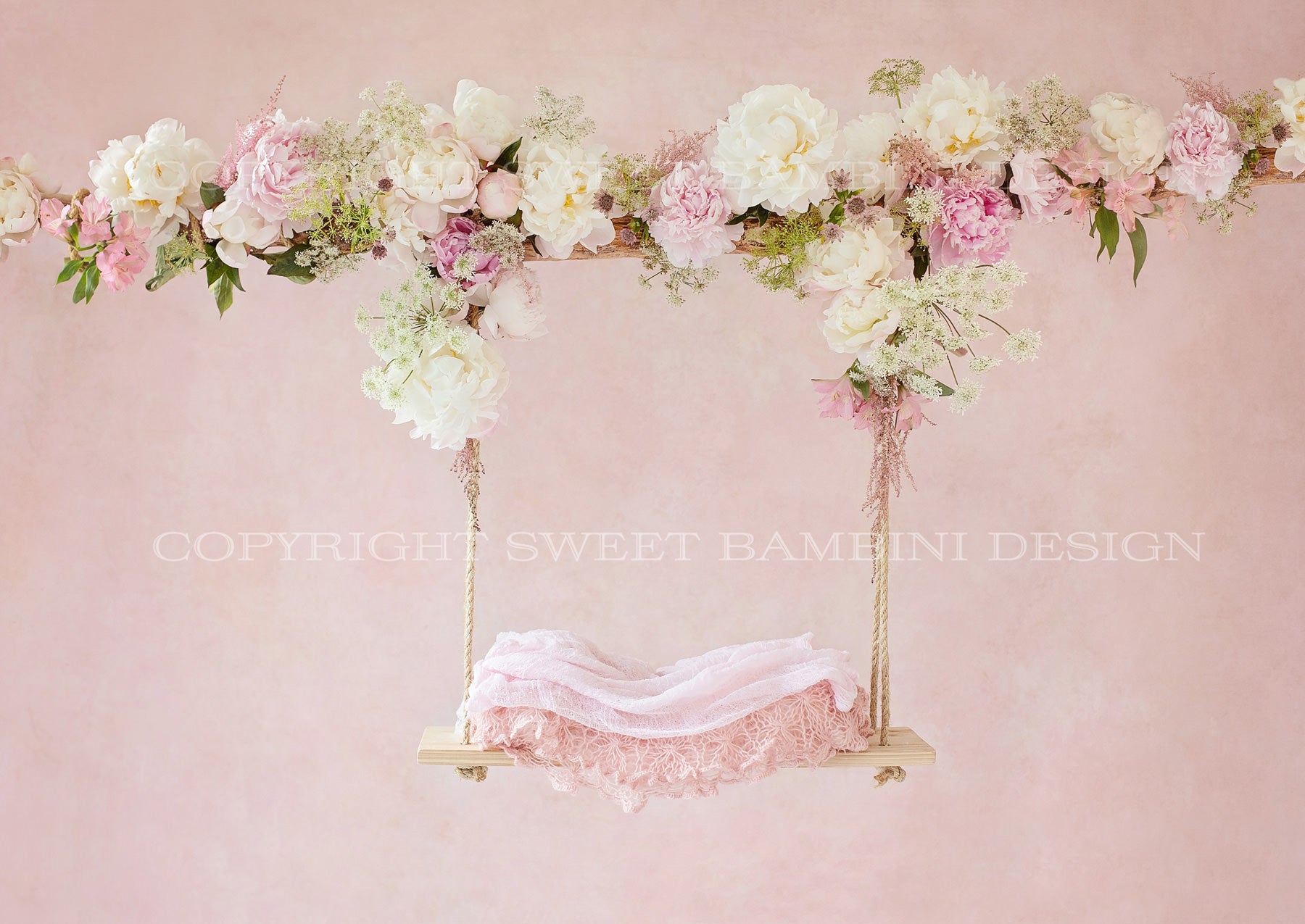Newborn Digital Background - Pink and White Peony Swing, Fresh Flowers, Instant Download, Ready for you to Edit