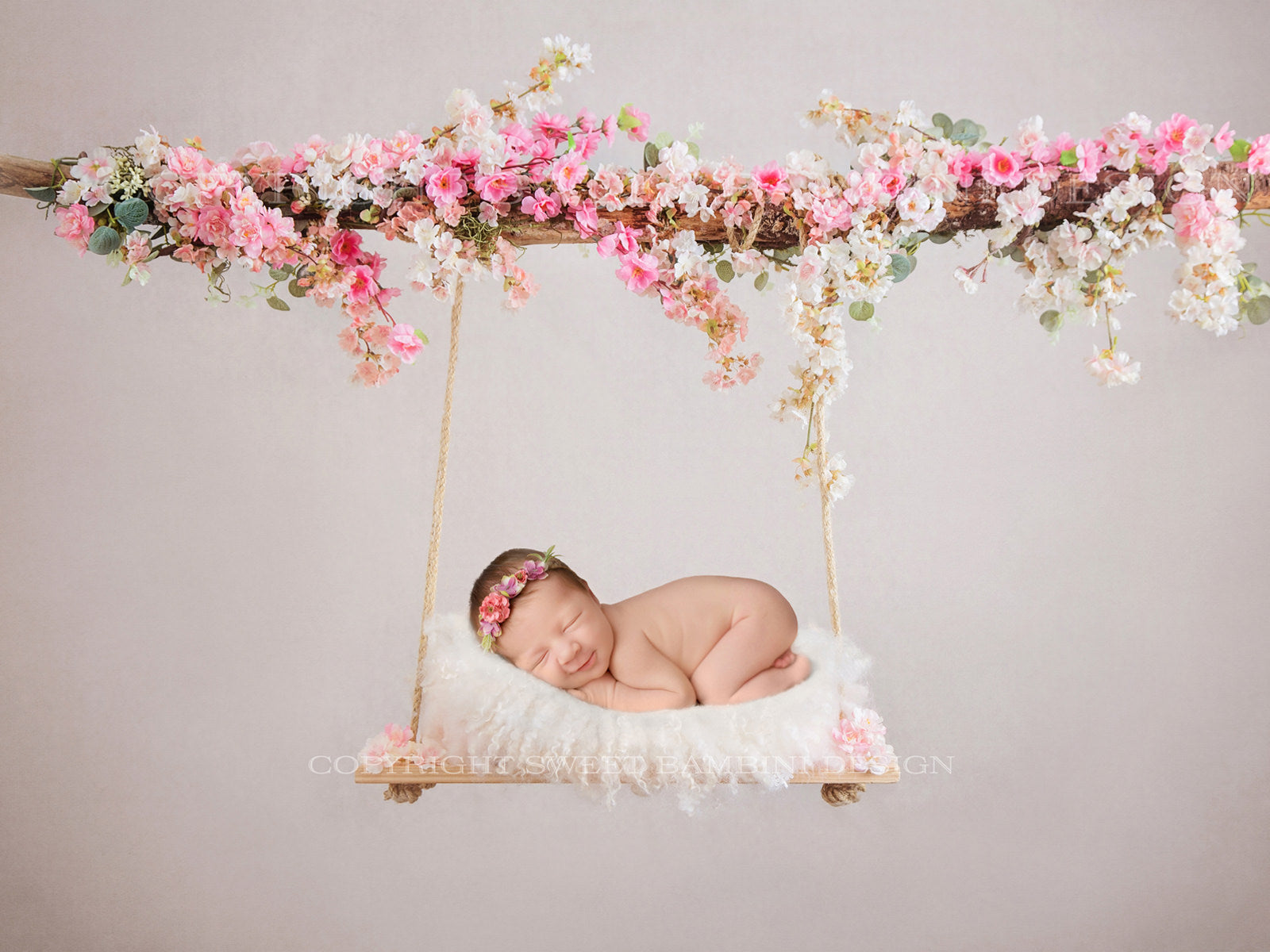 Beautiful floral digital newborn swing decorated with delicate blossom flowers.