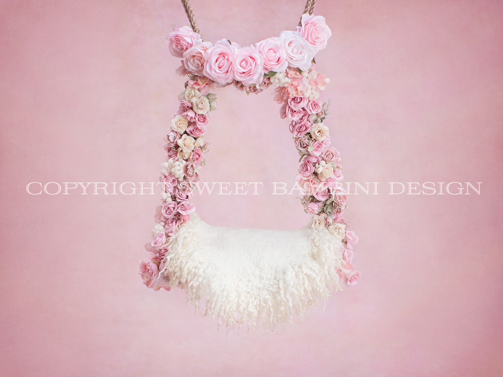 Newborn Digital Backdrop - Lovely swing decorated with beautiful pink roses, shot on a pink lightly textured hand painted background. Beautifully feminine.
