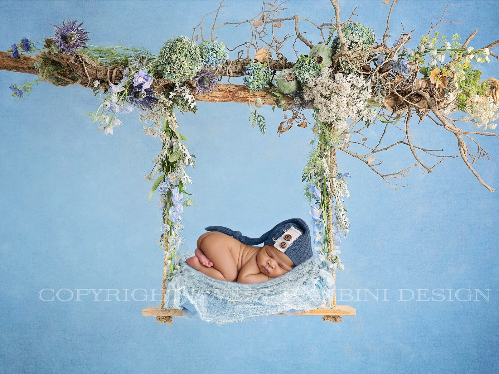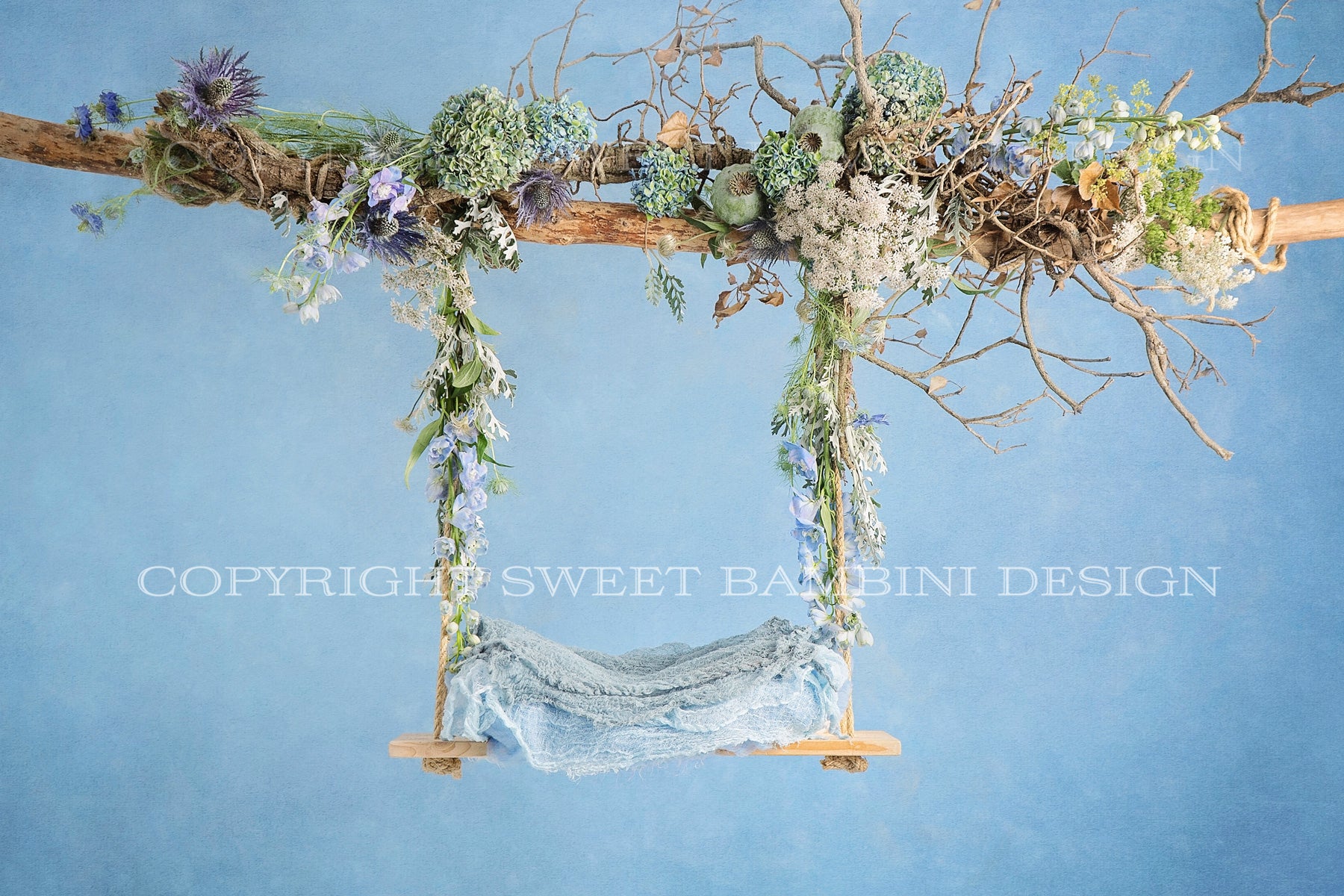 Newborn Digital Background - Blue wildflower swing, fresh florals, Instant Download, Ready for you to Edit