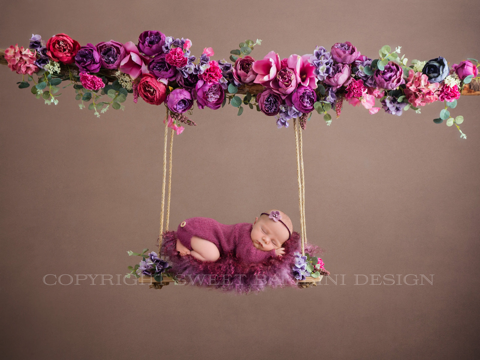 Newborn Floral Swing Digital Backdrop - beautiful peonies in shades of fuschia and purple