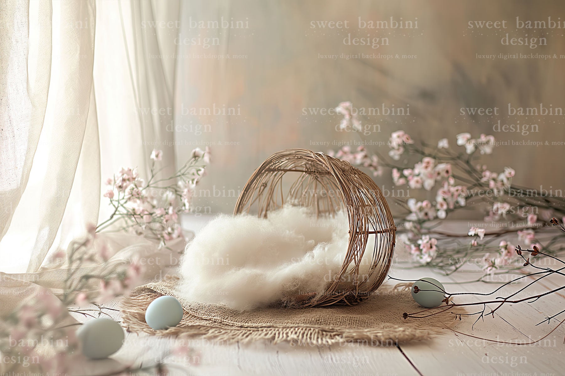 Gorgeous Easter Newborn Digital Backdrop in full resolution. Beautiful Easter set up, perfect for your Easter newborn shoots.