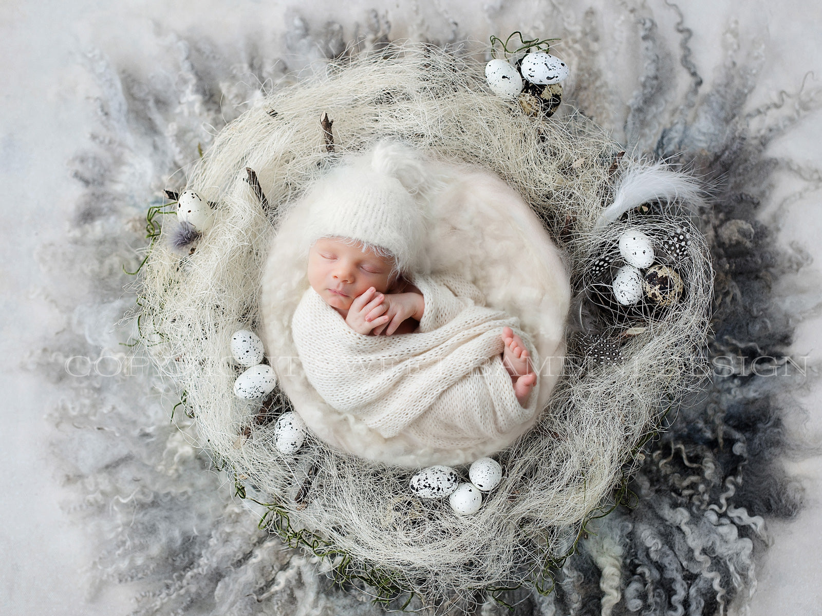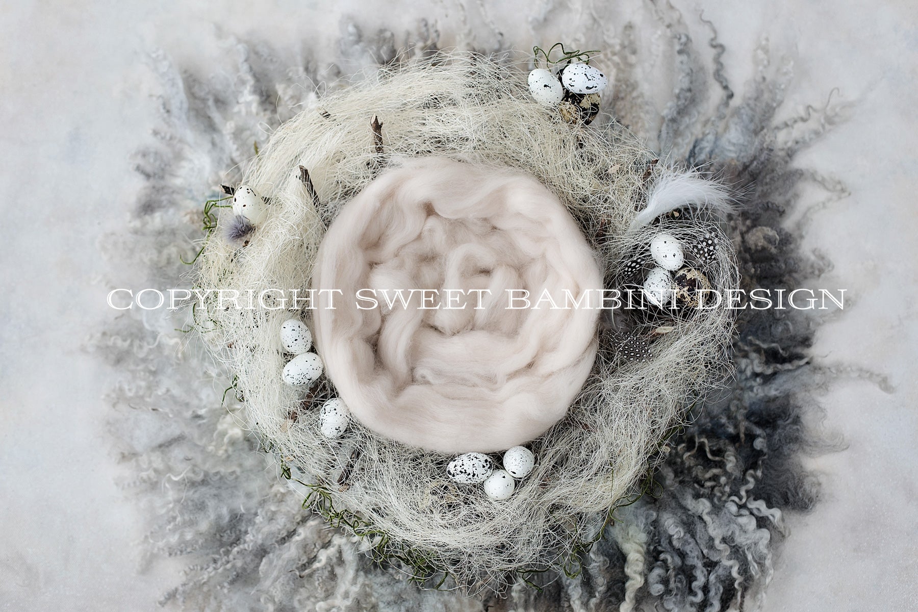 Easter Digital Backdrop for newborn girls or boys - Natural grey nest with little eggs shot on a rich textured grey background