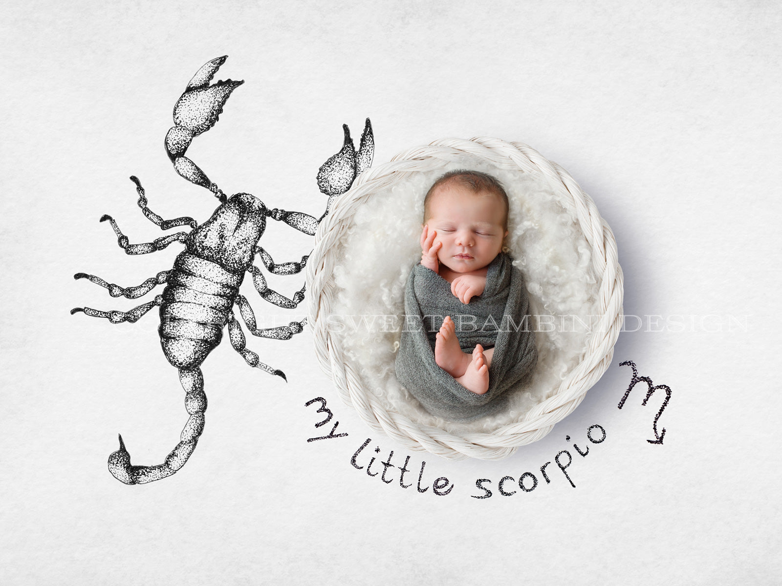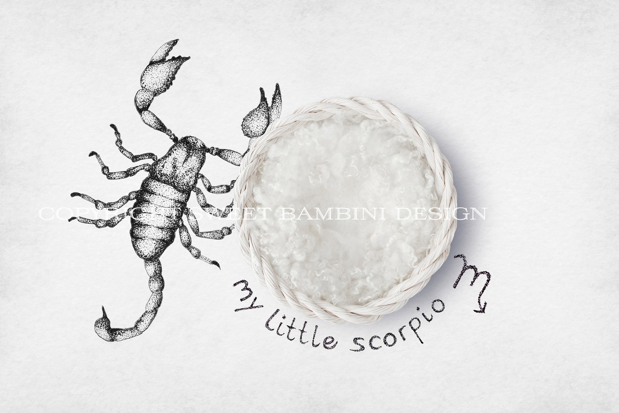 Horoscope newborn digital backdrop - SCORPIO - zodiac digital with a white basket- instant download