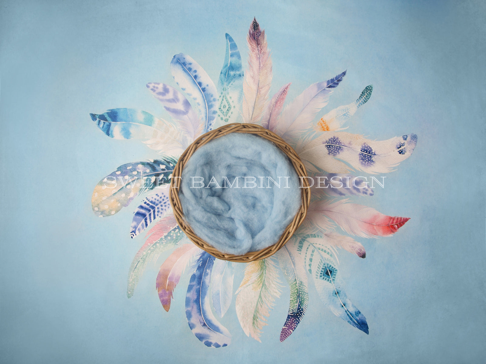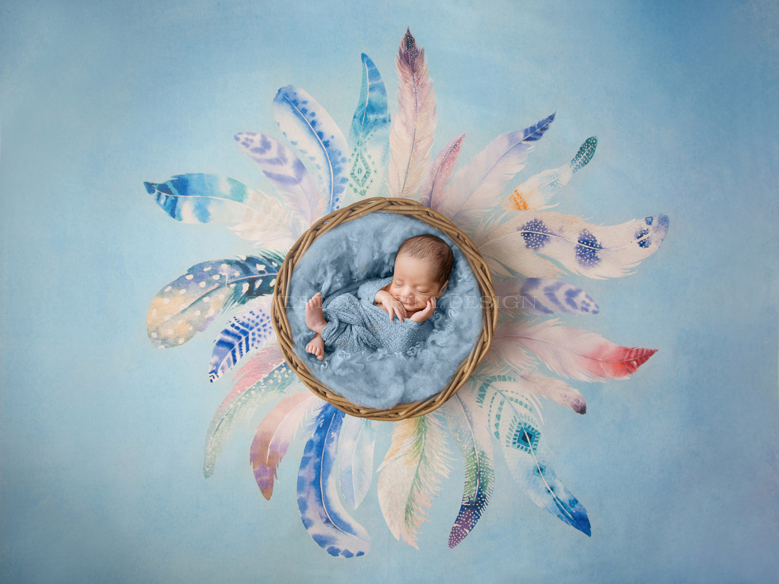 Newborn Photography Digital Photography Backdrop - beautiful nest in a middle of a canvas background with a feather design.