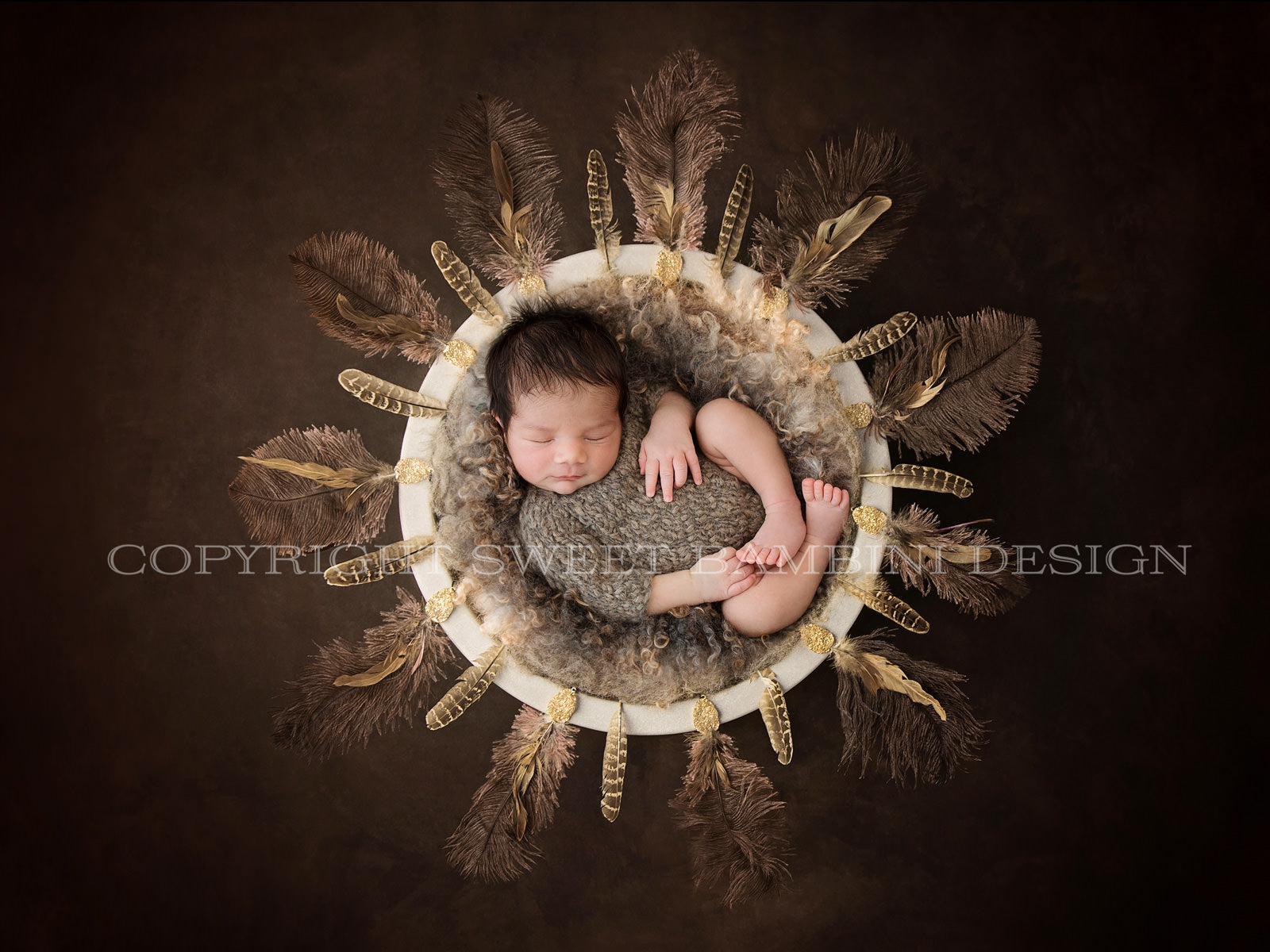 Unique Newborn Digital Background for girls or boys - Feather nest on rich brown background