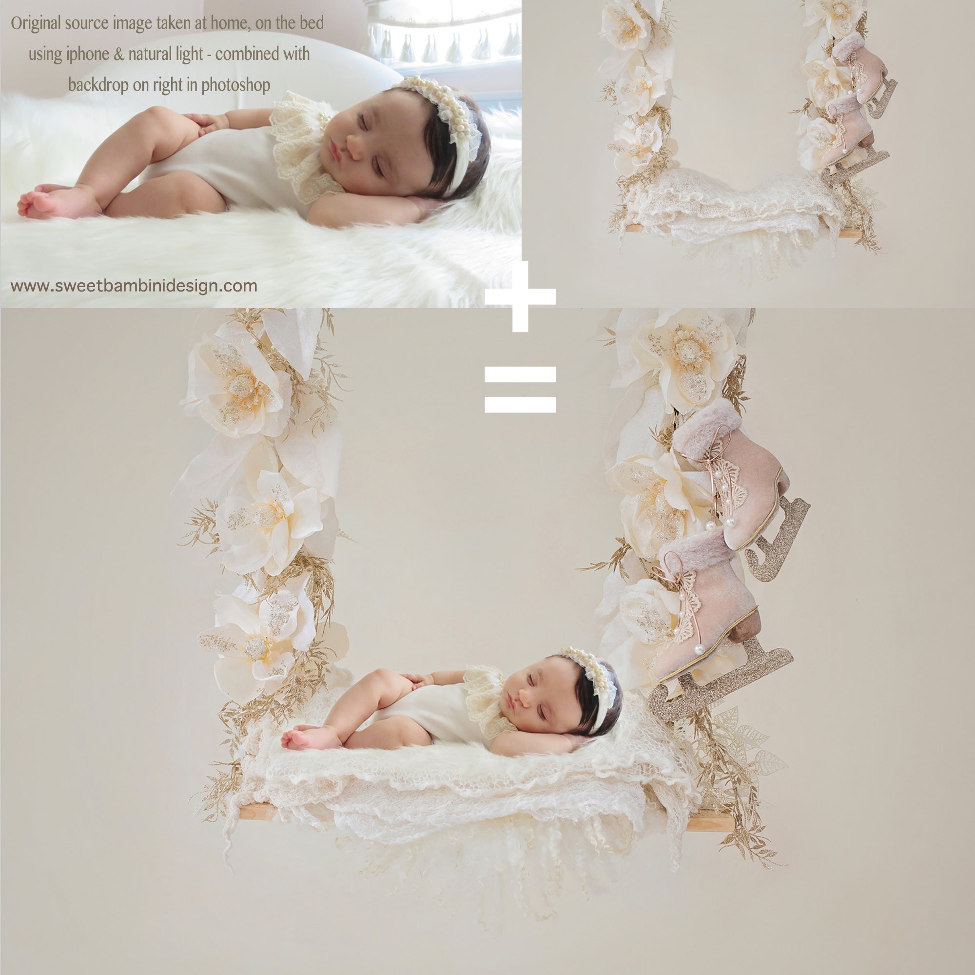 - As a guideline, if you have an image taken on white or light colour, look for backdrops where the blanket or fluff under the baby is light and vice versa. I can recommend a backdrop that will be a suitable one for your image if you are not sure what might work.