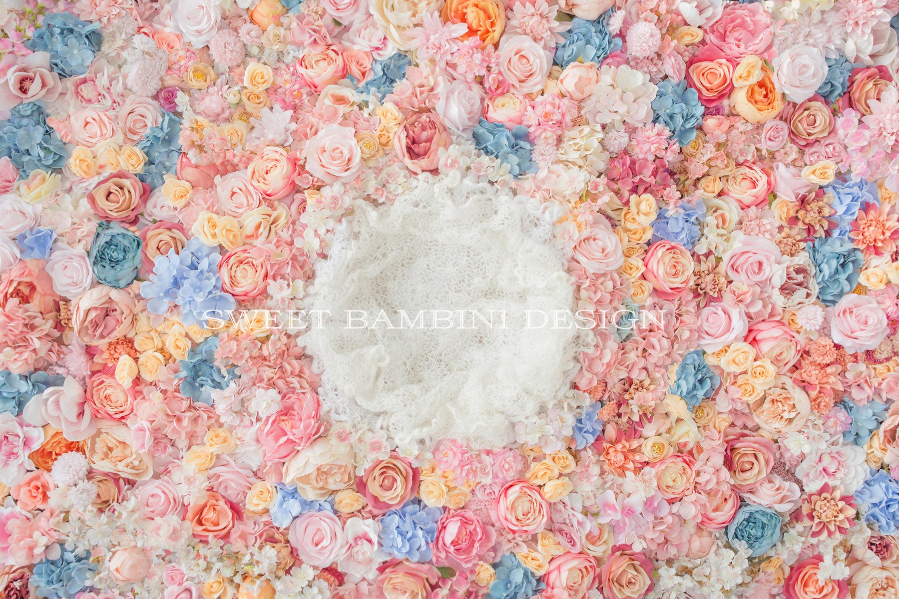Newborn Photography Digital Backdrop - beautiful bright pastels flower wall