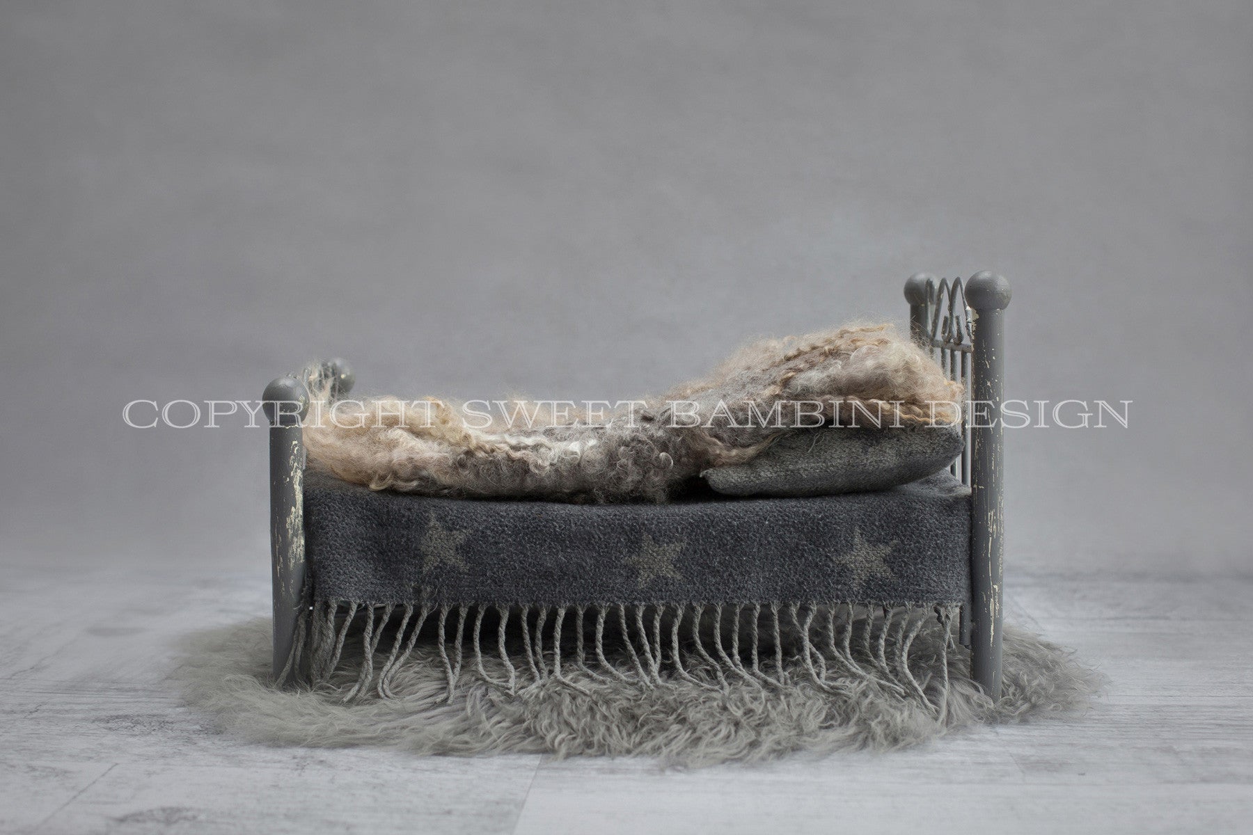 Newborn Digital Background - Little Grey Bed shot with Natural Light