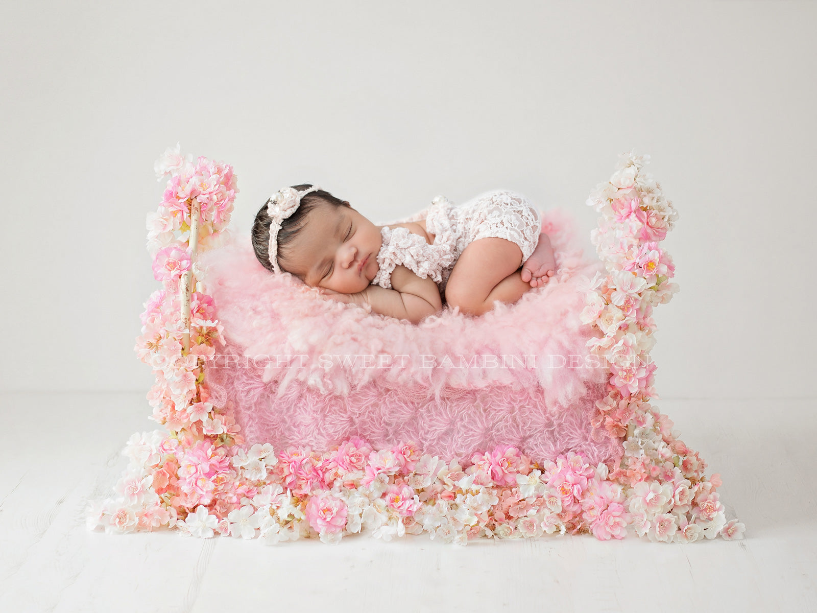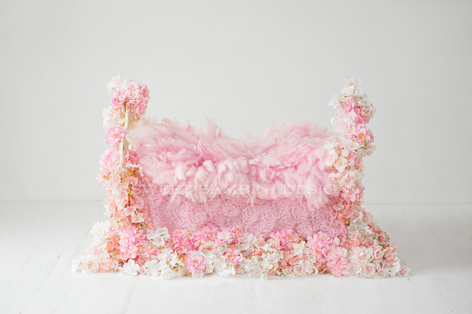 Newborn Photography Digital Backdrop for girls - Cherry Blossom Bed