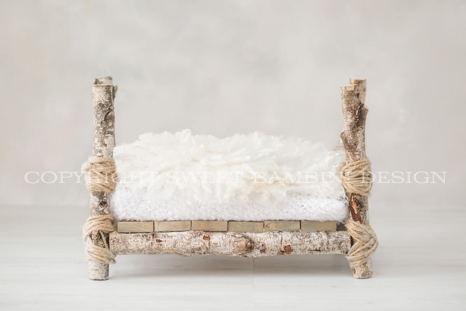 Newborn Photography Digital Photography Backdrop - Beautifully simple, rustic bed, on a white background, perfect for girls or boys.