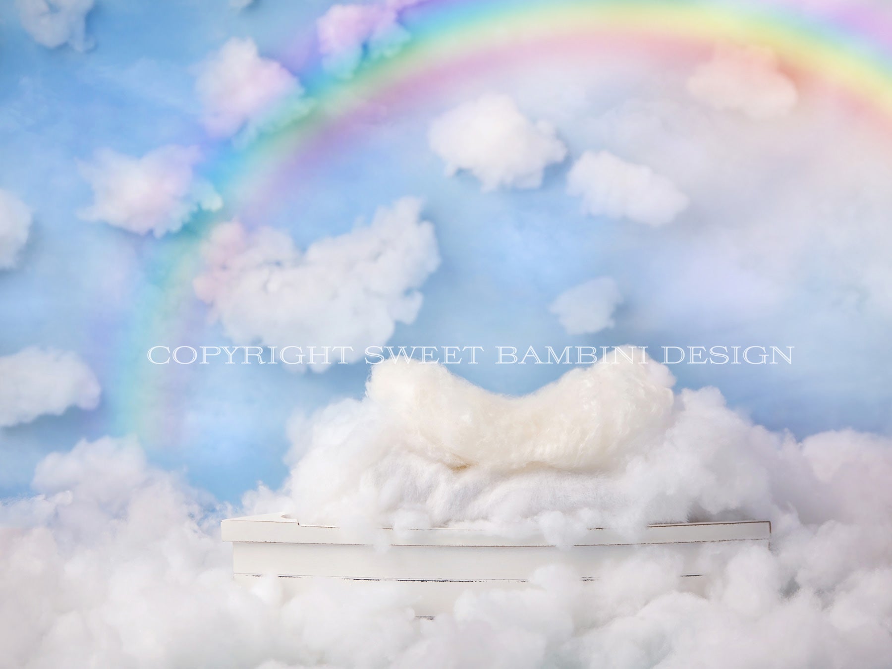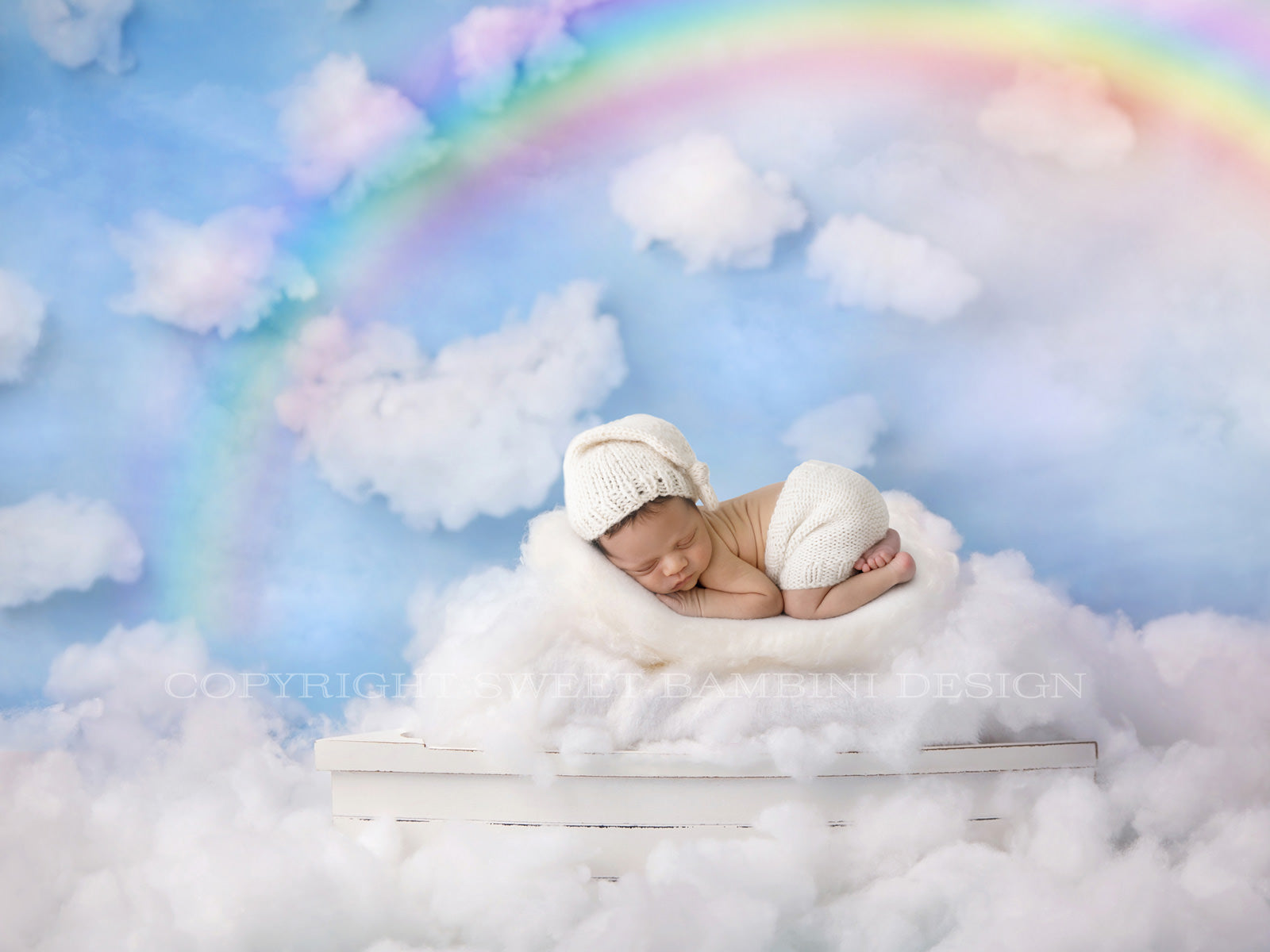Dreamboat White Fluffy Clouds 3 versions - rainbow, rays and plain, rainbow baby
