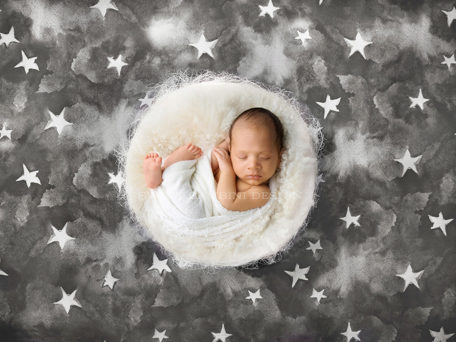 Newborn Digital Backdrop for boys and girls - Light Grey Starry Sky with white nest