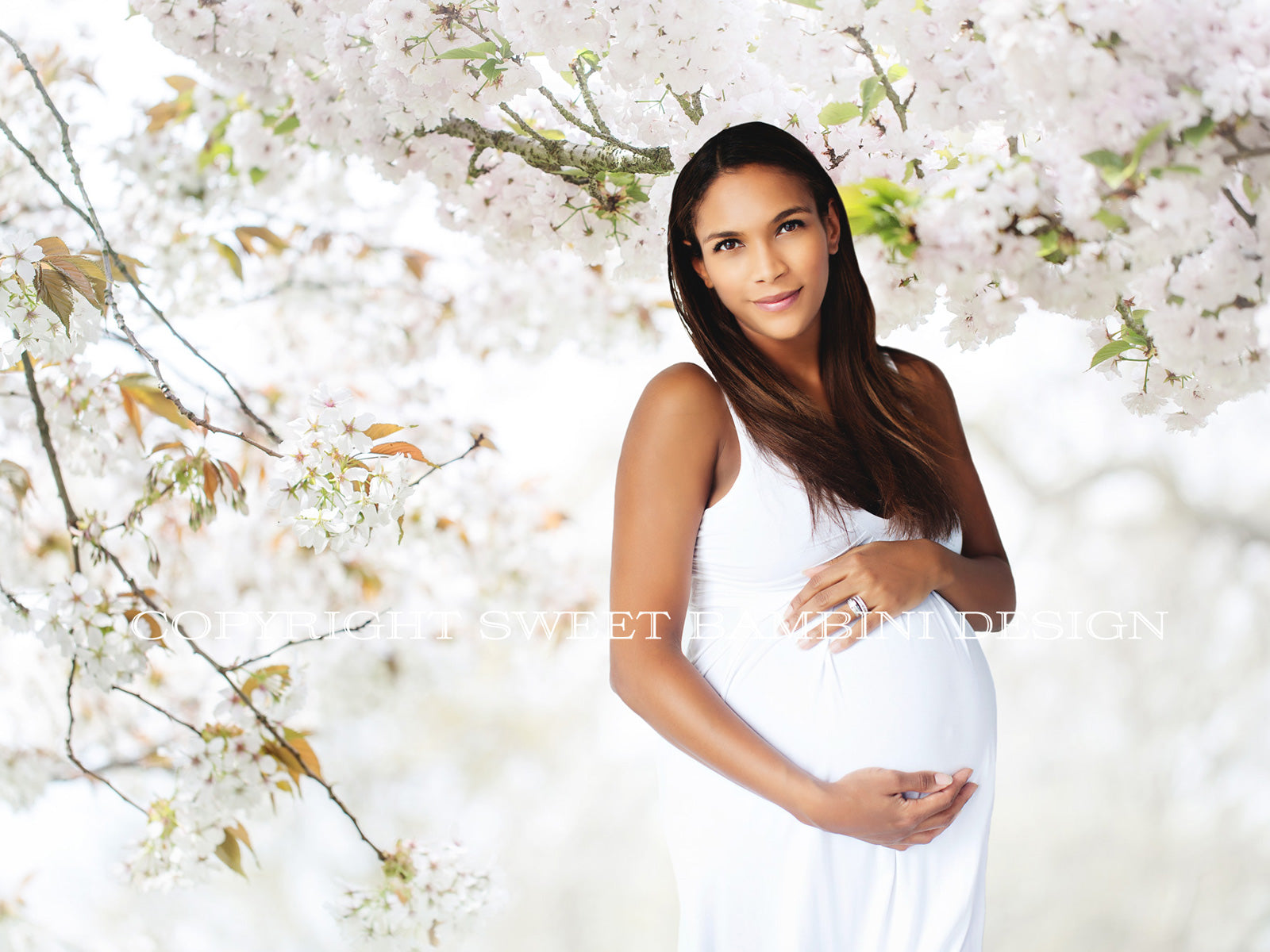 Maternity Digital Backdrop - Gorgeous White blossom trees shot outside, in natural light. Perfect as backdrop for high key maternity images.