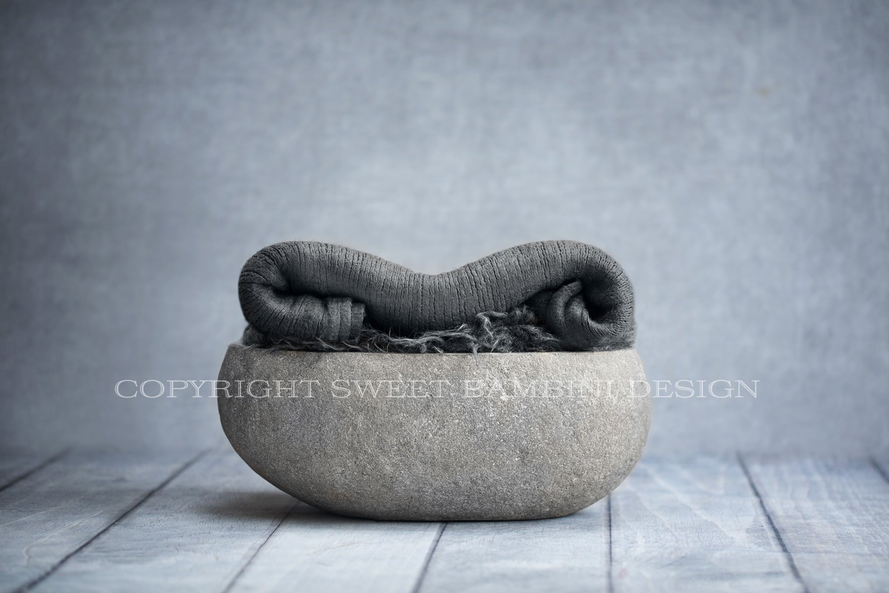 Newborn Digital Backdrop - Natural stone bowl with grey blanket